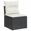 Ta vrtna sedežna garnitura je popoln dodatek za vaše dvorišče, teraso ali verando, saj zagotavlja udoben in vabljiv prostor za klepet z družino in prijatelji ali preprosto za sprostitev in uživanje na prostem. Trpežen material: PE ratan, znan tudi kot poli ratan, je močan sintetični material, ki ne potrebuje vzdrževanja in je videti kot naravni ratan. Je lahek, enostaven za čiščenje in se zaradi svoje vzdržljivosti in odpornosti na vremenske vplive pogosto uporablja za zunanje pohištvo.Funkcija shranjevanja z vodoodporno vrečo: Vsak vrtni sedež ima pod sedežem prostor za shranjevanje, opremljen z vodoodporno vrečo za shranjevanje blazin, igrač in drugih predmetov. Notranja torba ima zgornji pokrov in jo je mogoče varno pritrditi na sedež s kavljem in zanko za večjo stabilnost.Stabilna mizna plošča, ki je enostavna za čiščenje: Ta vrtna miza ima ploščo iz akacijevega lesa, ki je čvrsta, vzdržljiva in jo je enostavno čistiti z vlažno krpo.Vsestranski stolček za noge: Stolček je vsestransko uporaben, saj služi kot udoben naslon za noge, ko ležite na kavču, ali kot dodaten sedež na vrtu.Prevleko je mogoče odstraniti in oprati: Te sedežne blazine imajo odstranljive prevleke za lažje pranje in vzdrževanje.Robusten in stabilen okvir: Jeklen okvir s prašnim premazom je močan, stabilen, trpežen ter odporen na korozijo in slabe vremenske razmere, kar zagotavlja dolgotrajno delovanje. Dobro je vedeti:Če želite, da vaše zunanje pohištvo ostane lepo, vam priporočamo, da ga zaščitite z vodoodporno prevleko.Dimenzije vodoodporne vreče: 55 x 53 x 34 cm (D x Š x V)Največja dovoljena teža (na sedež): 110 kgUV-odpornoPlastične nastavljive nogePotrebno sestavljanje: DaSrednji sedež:Barva: ČrnaMaterial: PE ratan, jeklen okvir s prašnim premazomDimenzije: 55 x 62 x 69 cm (Š x G x V)Velikost sedeža: 55 x 55 cm (Š x G)Višina sedeža od tal (brez blazine): 37 cmKotni sedež:Barva: ČrnaMaterial: PE ratan, jeklen okvir s prašnim premazomDimenzije: 62 x 62 x 69 cm (Š x G x V)Velikost sedeža: 55 x 55 cm (Š x G)Višina sedeža od tal (brez blazine): 37 cmKavč z naslonjali za roke:Barva: ČrnaMaterial: PE ratan, prašno premazano jeklo, trden akacijev les z oljnim premazomDimenzije: 59 x 62 x 69 cm (Š x G x V)Velikost sedeža: 55 x 55 cm (Š x G)Višina sedeža od tal (brez blazine): 37 cmVišina naslonjal za roke od tal (brez blazine): 55 cmMiza:Barva: ČrnaMaterial: PE ratan, prašno premazano jeklo, trden akacijev les z oljnim premazomDimenzije: 55 x 55 x 37 cm (D x Š x V)Stolček za noge:Barva: ČrnaMaterial: PE ratan, jeklen okvir s prašnim premazomDimenzije: 55 x 55 x 37 cm (Š x G x V)Blazina:Barva: Kremno belaMaterial prevleke: Tkanina (100 % poliester)Polnilo sedežne blazine: PenaPolnilo hrbtne blazine: bombažna vlaknaDimenzije sedežne blazine: 55 x 55 x 3 cm (Š x G x D)Dimenzije hrbtne blazine: 55 x 45 x 13 cm (D x Š x D)Paket vsebuje:2 x Srednji kavč s funkcijo shranjevanja z vodoodporno vrečo1 x Kotni kavč s funkcijo shranjevanja z vodoodporno vrečo2 x Kavč s funkcijo shranjevanja z vodoodporno vrečo1 x Stolček s funkcijo shranjevanja1 x Miza6 x Blazina za hrbet6 x Sedežna blazina s snemljivo pralno prevleko 3326032