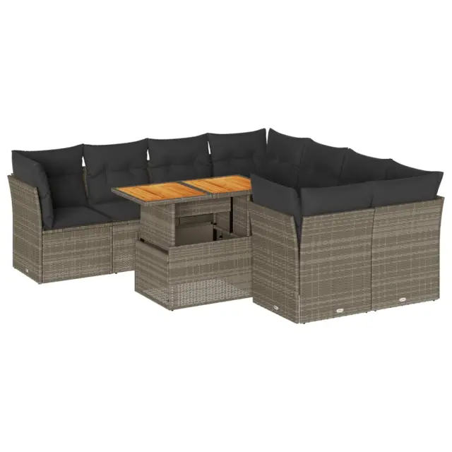 Ta vrtna sedežna garnitura je popoln dodatek za vaše dvorišče, teraso ali verando, saj zagotavlja udoben in vabljiv prostor za klepet z družino in prijatelji ali preprosto za sprostitev in uživanje na prostem. Trpežen material: PE ratan, znan tudi kot poli ratan, je močan sintetični material, ki ne potrebuje vzdrževanja in je videti kot naravni ratan. Je lahek, enostaven za čiščenje in se zaradi svoje vzdržljivosti in odpornosti na vremenske vplive pogosto uporablja za zunanje pohištvo.Funkcija shranjevanja z vodoodporno torbo: Vrtno pohištvo ima pod sedežem prostor za shranjevanje, opremljen z vodoodporno torbo za shranjevanje blazin, igrač in drugih stvari. Notranjo torbo je mogoče varno pritrditi na zunanje pohištvo s kavljem in zanko za večjo stabilnost.Nastavljiva mizna plošča: Z dvigom mizne plošče lahko mizo povišate, s čimer se zunanja klubska mizica spremeni v jedilno mizo. Popolna je za sprejemanje gostov ali uživanje v obrokih na prostem.Prevleko je mogoče odstraniti in oprati: Te sedežne blazine imajo odstranljive prevleke za lažje pranje in vzdrževanje.Modularna zasnova: Ta komplet zunanjega pohištva ima modularno zasnovo, zaradi česar je popolnoma prilagodljiv in enostaven za premikanje, tako da lahko zunanjo garnituro postavite kakor koli želite. Dobro je vedeti:Če želite, da vaše zunanje pohištvo ostane lepo, vam priporočamo, da ga zaščitite z vodoodporno prevleko.Dimenzije vodoodporne vreče: 55 x 53 x 34 cm (D x Š x V)Maksimalna nosilnost (na sedež): 110 kgUV-odpornoPlastične nastavljive nogePotrebno sestavljanje: DaKotni sedež:Barva: SivaMaterial: PE ratan, jeklen okvir s prašnim premazomDimenzije: 62 x 62 x 69 cm (Š x G x V)Velikost sedeža: 55 x 55 cm (Š x G)Višina sedeža od tal (brez blazine): 37 cmSrednji sedež:Barva: SivaMaterial: PE ratan, jeklen okvir s prašnim premazomDimenzije: 55 x 62 x 69 cm (Š x G x V)Velikost sedeža: 55 x 55 cm (Š x G)Višina sedeža od tal (brez blazine): 37 cmMiza:Barva: SivaMaterial: PE ratan, prašno premazano jeklo, trden akacijev les z oljnim premazomDimenzije: 100 x 55 x 44/73 cm (D x Š x V)Blazina:Barva: Temno sivaMaterial prevleke: Tkanina (100 % poliester)Polnilo sedežne blazine: PenaPolnilo hrbtne blazine: bombažna vlaknaDimenzije sedežne blazine: 55 x 55 x 3 cm (Š x G x D)Dimenzije hrbtne blazine: 55 x 45 x 13 cm (D x Š x D)Paket vsebuje:1 x Vrtna miza4 x Kotni sedež s funkcijo shranjevanja z vodoodporno vrečo4 x Srednji kavč s funkcijo shranjevanja z vodoodporno vrečo12 x Blazina za hrbet8 x Sedežna blazina s snemljivo in pralno prevleko 3326909
