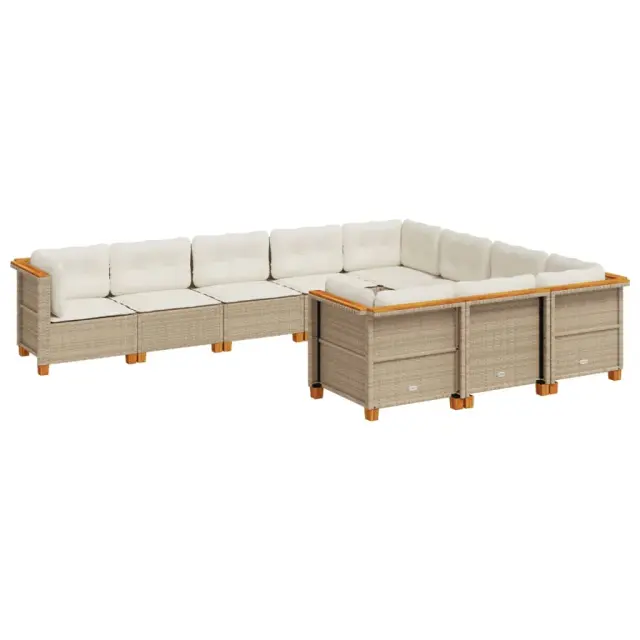 Ta vrtna sedežna garnitura je popoln dodatek za vaše dvorišče, teraso ali verando, saj zagotavlja udoben in vabljiv prostor za klepet z družino in prijatelji ali preprosto za sprostitev in uživanje na prostem. Vzdržljiv material: PE ratan, znan tudi kot poli ratan, je močan sintetični material, ki zahteva malo vzdrževanja in je videti kot naravni ratan. Je lahek, enostaven za čiščenje in se zaradi svoje vzdržljivosti in odpornosti na vremenske vplive pogosto uporablja za zunanje pohištvo.Udobno sedenje: To zunanje pohištvo z debelo oblazinjenimi blazinami zagotavlja udobno sedenje.Prevleko je mogoče odstraniti in oprati: Te sedežne blazine imajo odstranljive prevleke za lažje pranje in vzdrževanje.Modularna zasnova: Ta komplet zunanjega pohištva ima modularno zasnovo, zaradi česar je popolnoma prilagodljiv in enostaven za premikanje, tako da lahko zunanjo garnituro postavite kakor koli želite. Dobro je vedeti:Če želite, da vaše zunanje pohištvo ostane lepo, vam priporočamo, da ga zaščitite z vodoodporno prevleko.Maksimalna nosilnost (na sedež): 110 kgUV-odpornoLesene nogePotrebno sestavljanje: DaKotni sedež:Barva: BežMaterial: PE ratan, jeklo s prašnim premazom, trden akacijev les z naravnim oljnim premazomDimenzije: 63,5 x 63,5 x 62 cm (Š x G x V)Velikost sedeža: 56 x 56 cm (Š x G)Višina sedeža, merjena od tal (brez blazine): 32 cmSrednji sedež:Barva: BežMaterial: PE ratan, jeklo s prašnim premazom, trden akacijev les z naravnim oljnim premazomDimenzije: 63,5 x 63,5 x 62 cm (Š x G x V)Velikost sedišča: 63 x 56 cm (Š x G)Višina sedeža, merjena od tal (brez blazine): 32 cmBlazina:Barva: Kremno belaMaterial prevleke: Tkanina (100 % poliester)Polnilo sedežne blazine: PenaPolnilo hrbtne blazine: bombažna vlaknaDimenzije sedežne blazine (kotna): 56,5 x 56,5 x 3 cm (Š x G x D)Dimenzije sedežne blazine (sredinska): 63,5 x 56,5 x 3 cm (Š x G x D)Dimenzije hrbtne blazine (kotna): 52 x 35 x 10 cm (D × Š × D)Dimenzije hrbtne blazine (sredinska): 63 x 35 x 10 cm (D x Š x D)Paket vsebuje:4 x Kotni sedež6 x Srednji sedež14 x Blazina za hrbet10 x Sedežna blazina s snemljivo in pralno prevleko 3262033