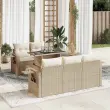 Ta vrtna sedežna garnitura je popoln dodatek za vaše dvorišče, teraso ali verando, saj zagotavlja udoben in vabljiv prostor za klepet z družino in prijatelji ali preprosto za sprostitev in uživanje na prostem. Trpežen material: PE ratan, znan tudi kot poli ratan, je močan sintetični material, ki ne potrebuje vzdrževanja in je videti kot naravni ratan. Je lahek, enostaven za čiščenje in se zaradi svoje vzdržljivosti in odpornosti na vremenske vplive pogosto uporablja za zunanje pohištvo.Funkcija shranjevanja z vodoodporno vrečo: Vsak vrtni sedež ima pod sedežem prostor za shranjevanje, opremljen z vodoodporno vrečo za shranjevanje blazin, igrač in drugih predmetov. Notranja torba ima zgornji pokrov in jo je mogoče varno pritrditi na sedež s kavljem in zanko za večjo stabilnost.Nastavljiva mizna plošča: Z dvigom mizne plošče lahko mizo povišate, s čimer se zunanja klubska mizica spremeni v jedilno mizo. Popolna je za sprejemanje gostov ali uživanje v obrokih na prostem.Prevleko je mogoče odstraniti in oprati: Te sedežne blazine imajo odstranljive prevleke za lažje pranje in vzdrževanje.Robusten in stabilen okvir: Jeklen okvir s prašnim premazom je močan, stabilen, trpežen ter odporen na korozijo in slabe vremenske razmere, kar zagotavlja dolgotrajno delovanje. Dobro je vedeti:Če želite, da vaše zunanje pohištvo ostane lepo, vam priporočamo, da ga zaščitite z vodoodporno prevleko.Dimenzije vodoodporne vreče: 55 x 53 x 34 cm (D x Š x V)Največja dovoljena teža (na sedež): 110 kgUV-odpornoPlastične nastavljive nogePotrebno sestavljanje: DaSrednji sedež:Barva: BežMaterial: PE ratan, jeklen okvir s prašnim premazomDimenzije: 55 x 62 x 69 cm (Š x G x V)Velikost sedeža: 55 x 55 cm (Š x G)Višina sedeža od tal (brez blazine): 37 cmKavč z naslonjali za roke:Barva: BežMaterial: PE ratan, jeklen okvir s prašnim premazomDimenzije: 62 x 62 x 69 cm (Š x G x V)Velikost sedeža: 55 x 55 cm (Š x G)Višina sedeža od tal (brez blazine): 37 cmVišina naslonjal za roke od tal: 55 cmMiza:Barva: BežMaterial: PE ratan, jeklo s prašnim premazom, kaljeno stekloDimenzije: 100 x 55 x 44/73 cm (D x Š x V)Blazina:Barva: Kremno belaMaterial prevleke: Tkanina (100 % poliester)Polnilo sedežne blazine: PenaPolnilo hrbtne blazine: bombažna vlaknaDimenzije sedežne blazine: 55 x 55 x 3 cm (Š x G x D)Dimenzije hrbtne blazine: 55 x 45 x 13 cm (D x Š x D)Paket vsebuje:1 x Srednji kavč s funkcijo shranjevanja z vodoodporno vrečo4 x Kavč s funkcijo shranjevanja z vodoodporno vrečo1 x Miza5 x Blazina za hrbet5 x Sedežna blazina s snemljivo pralno prevleko 3326409