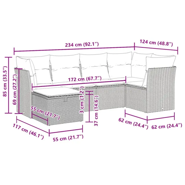 vidaXL Vrtna sedežna garnitura 6-delna z blazinami rjav poli ratan