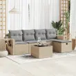 Ta vrtna sedežna garnitura je popoln dodatek za vaše dvorišče, teraso ali verando, saj zagotavlja udoben in vabljiv prostor za klepet z družino in prijatelji ali preprosto za sprostitev in uživanje na prostem. Trpežen material: PE ratan, znan tudi kot poli ratan, je močan sintetični material, ki ne potrebuje vzdrževanja in je videti kot naravni ratan. Je lahek, enostaven za čiščenje in se zaradi svoje vzdržljivosti in odpornosti na vremenske vplive pogosto uporablja za zunanje pohištvo.Funkcija shranjevanja z vodoodporno torbo: Vrtno pohištvo ima pod sedežem prostor za shranjevanje, opremljen z vodoodporno torbo za shranjevanje blazin, igrač in drugih stvari. Notranjo torbo je mogoče varno pritrditi na zunanje pohištvo s kavljem in zanko za večjo stabilnost.Vsestranski stolček za noge: Stolček je vsestransko uporaben, saj služi kot udoben naslon za noge, ko ležite na kavču, ali kot dodaten sedež na vrtu.Prevleko je mogoče odstraniti in oprati: Te sedežne blazine imajo odstranljive prevleke za lažje pranje in vzdrževanje.Modularna zasnova: Ta komplet zunanjega pohištva ima modularno zasnovo, zaradi česar je popolnoma prilagodljiv in enostaven za premikanje, tako da lahko zunanjo garnituro postavite kakor koli želite. Dobro je vedeti:Če želite, da vaše zunanje pohištvo ostane lepo, vam priporočamo, da ga zaščitite z vodoodporno prevleko.Dimenzije vodoodporne vreče: 55 x 53 x 34 cm (D x Š x V)Največja dovoljena teža (na sedež): 110 kgUV-odpornoPlastične nastavljive nogePotrebno sestavljanje: DaKavč z naslonjali za roke:Barva: BežMaterial: PE ratan, jeklen okvir s prašnim premazomDimenzije: 62 x 62 x 69 cm (Š x G x V)Velikost sedeža: 55 x 55 cm (Š x G)Višina sedeža od tal (brez blazine): 37 cmVišina naslonjal za roke od tal: 55 cmŠirina naslonjala za roke: 6 cmVelikost stranske mizice: 25 x 23 cm (D x Š)Srednji sedež:Barva: BežMaterial: PE ratan, jeklen okvir s prašnim premazomDimenzije: 55 x 62 x 69 cm (Š x G x V)Velikost sedeža: 55 x 55 cm (Š x G)Višina sedeža od tal (brez blazine): 37 cmStolček za noge:Barva: BežMaterial: PE ratan, jeklen okvir s prašnim premazomDimenzije: 55 x 55 x 37 cm (Š x G x V)Vrtna miza:Barva: BežMaterial: PE ratan, jeklo s prašnim premazom, kaljeno stekloDimenzije: 55 x 55 x 37 cm (Š x G x V)Blazina:Barva: Svetlo sivaMaterial prevleke: Tkanina (100 % poliester)Polnilo sedežne blazine: PenaPolnilo hrbtne blazine: bombažna vlaknaDimenzije sedežne blazine: 55 x 55 x 3 cm (Š x G x D)Dimenzije hrbtne blazine: 55 x 45 x 13 cm (D x Š x D)Paket vsebuje:2 x Kavč s funkcijo shranjevanja z vodoodporno vrečo2 x Srednji kavč s funkcijo shranjevanja z vodoodporno vrečo1 x Stolček s funkcijo shranjevanja1 x Vrtna miza4 x Blazina za hrbet5 x Sedežna blazina s snemljivo pralno prevleko 3325475