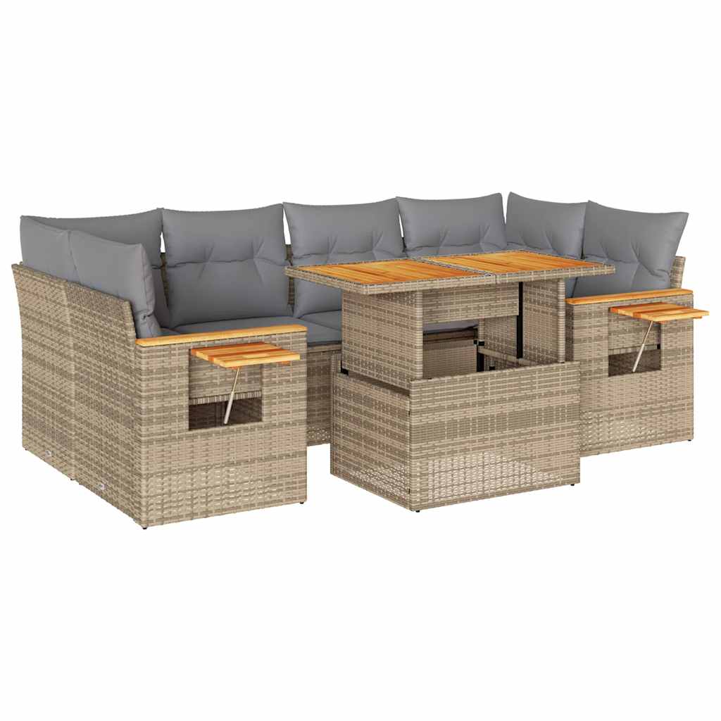 Ta vrtna sedežna garnitura je popoln dodatek za vaše dvorišče, teraso ali verando, saj zagotavlja udoben in vabljiv prostor za klepet z družino in prijatelji ali preprosto za sprostitev in uživanje na prostem.Trpežen material: PE ratan, znan tudi kot poli ratan, je močan sintetični material, ki ne potrebuje vzdrževanja in je videti kot naravni ratan. Je lahek, enostaven za čiščenje in se zaradi svoje vzdržljivosti in odpornosti na vremenske vplive pogosto uporablja za zunanje pohištvo.Funkcija shranjevanja z vodoodporno vrečo: Vsak vrtni sedež ima prostor za shranjevanje pod sedežem, skupaj z vodoodporno vrečo za shranjevanje blazin, igrač in drugih predmetov. Notranje vreče imajo zgornjo prevleko in jih je mogoče s pomočjo primenjal varno pritrditi na sedeže za dodatno varnost.Priročna stranska mizica: To zunanje pohištvo ima zložljivo stransko mizico s plinsko vzmetjo, ki zagotavlja priročen prostor za shranjevanje vaših potrebščin na dosegu roke.Prevleko je mogoče odstraniti in oprati: Te sedežne blazine imajo odstranljive prevleke za lažje pranje in vzdrževanje.Modularna zasnova: Ta komplet zunanjega pohištva ima modularno zasnovo, zaradi česar je popolnoma prilagodljiv in enostaven za premikanje, tako da lahko zunanjo garnituro postavite kakor koli želite.Dobro je vedeti:Če želite, da vaše zunanje pohištvo ostane lepo, vam priporočamo, da ga zaščitite z vodoodporno prevleko.Največja dovoljena teža (na sedež): 110 kgUV-odpornoPlastične nastavljive nogePotrebno sestavljanje: DaSrednji sedež:Barva: BežMaterial: PE ratan, jeklen okvir s prašnim premazomDimenzije: 55 x 62 x 69 cm (Š x G x V)Velikost sedeža: 55 x 55 cm (Š x G)Višina sedeža od tal (brez blazine): 37 cmKotni sedež:Barva: BežMaterial: PE ratan, jeklen okvir s prašnim premazomDimenzije: 62 x 62 x 69 cm (Š x G x V)Velikost sedeža: 55 x 55 cm (Š x G)Višina sedeža od tal (brez blazine): 37 cmKotni sedež z naslonom za roke iz akacijevega lesa:Barva: BežMaterial: PE ratan, prašno premazano jeklo, trden akacijev les z oljnim premazomDimenzije: 62 x 62 x 69 cm (Š x G x V)Velikost sedeža: 55 x 55 cm (Š x G)Višina sedeža od tal (brez blazine): 37 cmVišina naslonjal za roke od tal: 55 cmŠirina naslonjala za roke: 6 cmVelikost stranske mizice: 24,5 x 23,5 cm (D × Š)Miza:Barva: BežMaterial: PE ratan, prašno premazano jeklo, trden akacijev les z oljnim premazomDimenzije: 100 x 55 x 44/73 cm (D x Š x V)Blazina:Barva: Svetlo sivaMaterial prevleke: Tkanina (100 % poliester)Polnilo sedežne blazine: PenaPolnilo hrbtne blazine: bombažna vlaknaDimenzije sedežne blazine: 55 x 55 x 3 cm (Š x G x D)Dimenzije hrbtne blazine: 55 x 45 x 13 cm (D x Š x D)Paket vsebuje:1 x Vrtna miza2 x Kotni kavč s funkcijo shranjevanja z vodoodporno vrečo2 x Kotni sedež z naslonom za roke iz akacije s funkcijo shranjevanja z vodoodporno torbo2 x Srednji kavč s funkcijo shranjevanja z vodoodporno vrečo6 x Sedežna blazina s snemljivo pralno prevleko8 x Blazina za hrbet 3327566