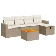 Ta vrtna sedežna garnitura je popoln dodatek za vaše dvorišče, teraso ali verando, saj zagotavlja udoben in vabljiv prostor za klepet z družino in prijatelji ali preprosto za sprostitev in uživanje na prostem. Trpežen material: PE ratan, znan tudi kot poli ratan, je močan sintetični material, ki ne potrebuje vzdrževanja in je videti kot naravni ratan. Je lahek, enostaven za čiščenje in se zaradi svoje vzdržljivosti in odpornosti na vremenske vplive pogosto uporablja za zunanje pohištvo.Funkcija shranjevanja z vodoodporno torbo: Vrtno pohištvo ima pod sedežem prostor za shranjevanje, opremljen z vodoodporno torbo za shranjevanje blazin, igrač in drugih stvari. Notranjo torbo je mogoče varno pritrditi na zunanje pohištvo s kavljem in zanko za večjo stabilnost.Vsestranski stolček za noge: Stolček je vsestransko uporaben, saj služi kot udoben naslon za noge, ko ležite na kavču, ali kot dodaten sedež na vrtu.Prevleko je mogoče odstraniti in oprati: Te sedežne blazine imajo odstranljive prevleke za lažje pranje in vzdrževanje.Modularna zasnova: Ta komplet zunanjega pohištva ima modularno zasnovo, zaradi česar je popolnoma prilagodljiv in enostaven za premikanje, tako da lahko zunanjo garnituro postavite kakor koli želite. Dobro je vedeti:Če želite, da vaše zunanje pohištvo ostane lepo, vam priporočamo, da ga zaščitite z vodoodporno prevleko.Dimenzije vodoodporne vreče: 55 x 53 x 34 cm (D x Š x V)Največja dovoljena teža (na sedež): 110 kgUV-odpornoPlastične nastavljive nogePotrebno sestavljanje: DaKavč z naslonjali za roke:Barva: BežMaterial: PE ratan, jeklen okvir s prašnim premazomDimenzije: 65,5 x 62 x 69 cm (Š x G x V)Velikost sedeža: 55 x 55 cm (Š x G)Višina sedeža od tal (brez blazine): 37 cmVišina naslonjal za roke od tal: 55 cmŠirina naslonjala za roke: 10 cmSrednji sedež:Barva: BežMaterial: PE ratan, jeklen okvir s prašnim premazomDimenzije: 55 x 62 x 69 cm (Š x G x V)Velikost sedeža: 55 x 55 cm (Š x G)Višina sedeža od tal (brez blazine): 37 cmStolček za noge:Barva: BežMaterial: PE ratan, jeklen okvir s prašnim premazomDimenzije: 55 x 55 x 37 cm (Š x G x V)Vrtna miza:Barva: Bež in rjavaMaterial: PE ratan, prašno premazano jeklo, trden akacijev les z oljnim premazomDimenzije: 55 x 55 x 37 cm (Š x G x V)Blazina:Barva: Kremno belaMaterial prevleke: Tkanina (100 % poliester)Polnilo sedežne blazine: PenaPolnilo hrbtne blazine: bombažna vlaknaDimenzije sedežne blazine: 55 x 55 x 3 cm (Š x G x D)Dimenzije hrbtne blazine: 55 x 45 x 13 cm (D x Š x D) Paket vsebuje:2 x Kavč s funkcijo shranjevanja z vodoodporno vrečo2 x Srednji kavč s funkcijo shranjevanja z vodoodporno vrečo1 x Stolček s funkcijo shranjevanja1 x Vrtna miza6 x Blazina za hrbet5 x Sedežna blazina s snemljivo pralno prevleko 3325782