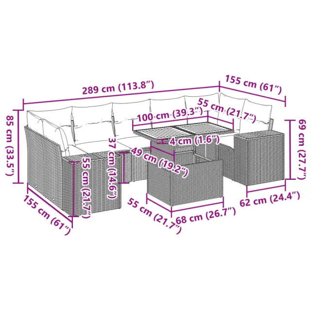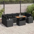vidaXL Vrtna sedežna garnitura 8-delna z blazinami črn poli ratan