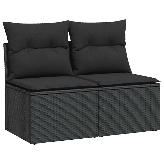Ta vrtna sedežna garnitura je popoln dodatek za vaše dvorišče, teraso ali verando, saj zagotavlja udoben in vabljiv prostor za klepet z družino in prijatelji ali preprosto za sprostitev in uživanje na prostem.Trpežen material: PE ratan, znan tudi kot poli ratan, je močan sintetični material, ki ne potrebuje vzdrževanja in je videti kot naravni ratan. Je lahek, enostaven za čiščenje in se zaradi svoje vzdržljivosti in odpornosti na vremenske vplive pogosto uporablja za zunanje pohištvo.Funkcija shranjevanja z vodoodporno vrečo: Vsak vrtni sedež ima prostor za shranjevanje pod sedežem, skupaj z vodoodporno vrečo za shranjevanje blazin, igrač in drugih predmetov. Notranje vreče imajo zgornjo prevleko in jih je mogoče s pomočjo primenjal varno pritrditi na sedeže za dodatno varnost.Prevleko je mogoče odstraniti in oprati: Te sedežne blazine imajo odstranljive prevleke za lažje pranje in vzdrževanje.Modularna zasnova: Ta komplet zunanjega pohištva ima modularno zasnovo, zaradi česar je popolnoma prilagodljiv in enostaven za premikanje, tako da lahko zunanjo garnituro postavite kakor koli želite.Dobro je vedeti:Če želite, da vaše zunanje pohištvo ostane lepo, vam priporočamo, da ga zaščitite z vodoodporno prevleko.Srednji sedež:Barva: ČrnaMaterial: PE ratan, jeklen okvir s prašnim premazomDimenzije: 55 x 62 x 69 cm (Š x G x V)Velikost sedeža: 55 x 55 cm (Š x G)Višina sedeža od tal (brez blazine): 37 cmMaksimalna nosilnost: 110 kgUV-odpornoPlastične nastavljive nogePotrebno sestavljanje: DaBlazina:Barva: ČrnaMaterial prevleke: Tkanina (100 % poliester)Polnilo sedežne blazine: PenaPolnilo hrbtne blazine: bombažna vlaknaDimenzije sedežne blazine: 55 x 55 x 3 cm (Š x G x D)Dimenzije hrbtne blazine: 55 x 45 x 13 cm (D x Š x D)Paket vsebuje:2 x Srednji kavč s funkcijo shranjevanja z vodoodporno vrečo2 x Blazina za hrbet2 x Sedežna blazina s snemljivo pralno prevleko 3325231