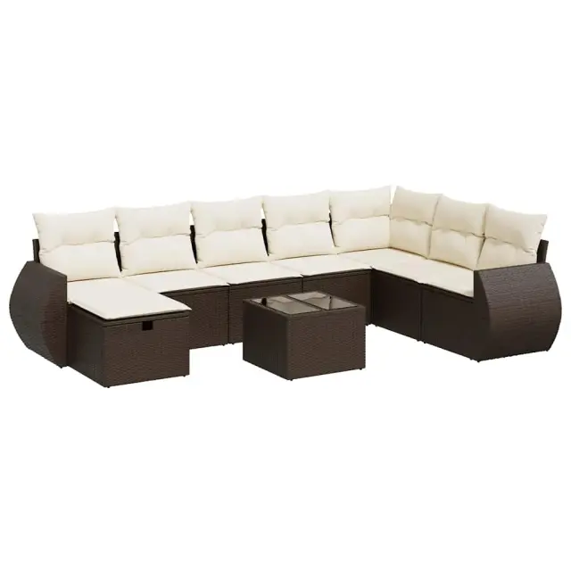 Ta vrtna sedežna garnitura je popoln dodatek za vaše dvorišče, teraso ali verando, saj zagotavlja udoben in vabljiv prostor za klepet z družino in prijatelji ali preprosto za sprostitev in uživanje na prostem. Trpežen material: PE ratan, znan tudi kot poli ratan, je močan sintetični material, ki ne potrebuje vzdrževanja in je videti kot naravni ratan. Je lahek, enostaven za čiščenje in se zaradi svoje vzdržljivosti in odpornosti na vremenske vplive pogosto uporablja za zunanje pohištvo.Funkcija shranjevanja z vodoodporno torbo: Vrtno pohištvo ima pod sedežem prostor za shranjevanje, opremljen z vodoodporno torbo za shranjevanje blazin, igrač in drugih stvari. Notranjo torbo je mogoče varno pritrditi na zunanje pohištvo s kavljem in zanko za večjo stabilnost.Vsestranski stolček za noge: Stolček je vsestransko uporaben, saj služi kot udoben naslon za noge, ko ležite na kavču, ali kot dodaten sedež na vrtu.Prevleko je mogoče odstraniti in oprati: Te sedežne blazine imajo odstranljive prevleke za lažje pranje in vzdrževanje.Modularna zasnova: Ta komplet zunanjega pohištva ima modularno zasnovo, zaradi česar je popolnoma prilagodljiv in enostaven za premikanje, tako da lahko zunanjo garnituro postavite kakor koli želite. Dobro je vedeti:Če želite, da vaše zunanje pohištvo ostane lepo, vam priporočamo, da ga zaščitite z vodoodporno prevleko.Dimenzije vodoodporne vreče: 55 x 53 x 34 cm (D x Š x V)Največja dovoljena teža (na sedež): 110 kgUV-odpornoPlastične nastavljive nogePotrebno sestavljanje: DaKavč z naslonjali za roke:Barva: RjavaMaterial: PE ratan, jeklen okvir s prašnim premazomDimenzije: 71 x 62 x 69 cm (Š x G x V)Velikost sedeža: 55 x 55 cm (Š x G)Višina sedeža od tal (brez blazine): 37 cmVišina naslonjal za roke od tal: 55 cmKotni sedež:Barva: RjavaMaterial: PE ratan, jeklen okvir s prašnim premazomDimenzije: 62 x 62 x 69 cm (Š x G x V)Velikost sedeža: 55 x 55 cm (Š x G)Višina sedeža od tal (brez blazine): 37 cmSrednji sedež:Barva: RjavaMaterial: PE ratan, jeklen okvir s prašnim premazomDimenzije: 55 x 62 x 69 cm (Š x G x V)Velikost sedeža: 55 x 55 cm (Š x G)Višina sedeža od tal (brez blazine): 37 cmStolček za noge:Barva: RjavaMaterial: PE ratan, jeklen okvir s prašnim premazomDimenzije: 55 x 55 x 37 cm (Š x G x V)Vrtna miza:Barva: RjavaMaterial: PE ratan, jeklo s prašnim premazom, kaljeno stekloDimenzije: 55 x 55 x 37 cm (Š x G x V)Blazina:Barva: Kremno belaMaterial prevleke: Tkanina (100 % poliester)Polnilo sedežne blazine: PenaPolnilo hrbtne blazine: bombažna vlaknaDimenzije sedežne blazine: 55 x 55 x 3 cm (Š x G x D)Dimenzije hrbtne blazine: 55 x 45 x 13 cm (D x Š x D) Paket vsebuje:2 x Kavč s funkcijo shranjevanja z vodoodporno vrečo1 x Kotni kavč s funkcijo shranjevanja z vodoodporno vrečo4 x Srednji kavč s funkcijo shranjevanja z vodoodporno vrečo1 x Stolček s funkcijo shranjevanja1 x Vrtna miza8 x Blazina za hrbet8 x Sedežna blazina s snemljivo in pralno prevleko 3325649