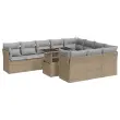 Ta vrtna sedežna garnitura je popoln dodatek za vaše dvorišče, teraso ali verando, saj zagotavlja udoben in vabljiv prostor za klepet z družino in prijatelji ali preprosto za sprostitev in uživanje na prostem. Trpežen material: PE ratan, znan tudi kot poli ratan, je močan sintetični material, ki ne potrebuje vzdrževanja in je videti kot naravni ratan. Je lahek, enostaven za čiščenje in se zaradi svoje vzdržljivosti in odpornosti na vremenske vplive pogosto uporablja za zunanje pohištvo.Funkcija shranjevanja z vodoodporno vrečo: Vsak vrtni sedež ima pod sedežem prostor za shranjevanje, opremljen z vodoodporno vrečo za shranjevanje blazin, igrač in drugih predmetov. Notranja torba ima zgornji pokrov in jo je mogoče varno pritrditi na sedež s kavljem in zanko za večjo stabilnost.Nastavljiva mizna plošča: Z dvigom mizne plošče lahko mizo povišate, s čimer se zunanja klubska mizica spremeni v jedilno mizo. Popolna je za sprejemanje gostov ali uživanje v obrokih na prostem.Prevleko je mogoče odstraniti in oprati: Te sedežne blazine imajo odstranljive prevleke za lažje pranje in vzdrževanje.Robusten in stabilen okvir: Jeklen okvir s prašnim premazom je močan, stabilen, trpežen ter odporen na korozijo in slabe vremenske razmere, kar zagotavlja dolgotrajno delovanje. Dobro je vedeti:Če želite, da vaše zunanje pohištvo ostane lepo, vam priporočamo, da ga zaščitite z vodoodporno prevleko.Dimenzije vodoodporne vreče: 55 x 53 x 34 cm (D x Š x V)Največja dovoljena teža (na sedež): 110 kgUV-odpornoPlastične nastavljive nogePotrebno sestavljanje: DaSrednji sedež:Barva: BežMaterial: PE ratan, jeklen okvir s prašnim premazomDimenzije: 55 x 62 x 69 cm (Š x G x V)Velikost sedeža: 55 x 55 cm (Š x G)Višina sedeža od tal (brez blazine): 37 cmKotni sedež:Barva: BežMaterial: PE ratan, jeklen okvir s prašnim premazomDimenzije: 62 x 62 x 69 cm (Š x G x V)Velikost sedeža: 55 x 55 cm (Š x G)Višina sedeža od tal (brez blazine): 37 cmMiza:Barva: BežMaterial: PE ratan, jeklo s prašnim premazom, kaljeno stekloDimenzije: 100 x 55 x 44/73 cm (D x Š x V)Blazina:Barva: Svetlo sivaMaterial prevleke: Tkanina (100 % poliester)Polnilo sedežne blazine: PenaPolnilo hrbtne blazine: bombažna vlaknaDimenzije sedežne blazine: 55 x 55 x 3 cm (Š x G x D)Dimenzije hrbtne blazine: 55 x 45 x 13 cm (D x Š x D)Paket vsebuje:6 x Srednji kavč s funkcijo shranjevanja z vodoodporno vrečo4 x Kotni sedež s funkcijo shranjevanja z vodoodporno vrečo1 x Miza14 x Blazina za hrbet10 x Sedežna blazina s snemljivo in pralno prevleko 3326230