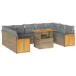 Ta vrtna sedežna garnitura je popoln dodatek za vaše dvorišče, teraso ali verando, saj zagotavlja udoben in vabljiv prostor za klepet z družino in prijatelji ali preprosto za sprostitev in uživanje na prostem. Trpežen material: PE ratan, znan tudi kot poli ratan, je močan sintetični material, ki ne potrebuje vzdrževanja in je videti kot naravni ratan. Je lahek, enostaven za čiščenje in se zaradi svoje vzdržljivosti in odpornosti na vremenske vplive pogosto uporablja za zunanje pohištvo.Funkcija shranjevanja z vodoodporno vrečo: Vsak vrtni sedež ima prostor za shranjevanje pod sedežem, skupaj z vodoodporno vrečo za shranjevanje blazin, igrač in drugih predmetov. Notranje vreče imajo zgornjo prevleko in jih je mogoče s pomočjo primenjal varno pritrditi na sedeže za dodatno varnost.Prevleko je mogoče odstraniti in oprati: Te sedežne blazine imajo odstranljive prevleke za lažje pranje in vzdrževanje.Modularna zasnova: Ta komplet zunanjega pohištva ima modularno zasnovo, zaradi česar je popolnoma prilagodljiv in enostaven za premikanje, tako da lahko zunanjo garnituro postavite kakor koli želite. Dobro je vedeti:Če želite, da vaše zunanje pohištvo ostane lepo, vam priporočamo, da ga zaščitite z vodoodporno prevleko.Dimenzije vodoodporne vreče: 55 x 53 x 34 cm (D x Š x V)Največja dovoljena teža (na sedež): 110 kgUV-odpornoPlastične nastavljive nogePotrebno sestavljanje: DaSrednji sedež:Barva: BežMaterial: PE ratan, jeklen okvir s prašnim premazomDimenzije: 55 x 62 x 69 cm (Š x G x V)Velikost sedeža: 55 x 55 cm (Š x G)Višina sedeža od tal (brez blazine): 37 cmKotni sedež:Barva: BežMaterial: PE ratan, jeklen okvir s prašnim premazomDimenzije: 62 x 62 x 69 cm (Š x G x V)Velikost sedeža: 55 x 55 cm (Š x G)Višina sedeža od tal (brez blazine): 37 cmKavč z naslonjali za roke:Barva: BežMaterial: PE ratan, prašno premazano jeklo, trden akacijev les z oljnim premazomDimenzije: 59 x 62 x 69 cm (Š x G x V)Velikost sedeža: 55 x 55 cm (Š x G)Višina sedeža od tal (brez blazine): 37 cmMiza:Barva: BežMaterial: PE ratan, prašno premazano jeklo, trden akacijev les z oljnim premazomDimenzije: 100 x 55 x 44/73 cm (D x Š x V)Blazina:Barva: Svetlo sivaMaterial prevleke: Tkanina (100 % poliester)Polnilo sedežne blazine: PenaPolnilo hrbtne blazine: bombažna vlaknaDimenzije sedežne blazine: 55 x 55 x 3 cm (Š x G x D)Dimenzije hrbtne blazine: 55 x 45 x 13 cm (D x Š x D)Paket vsebuje:5 x Srednji sedež s funkcijo shranjevanja z vodoodporno vrečo2 x Kotni kavč s funkcijo shranjevanja z vodoodporno vrečo2 x Kavč s funkcijo shranjevanja z vodoodporno vrečo1 x Miza11 x Blazina za hrbet9 x Sedežna blazina s snemljivo in pralno prevleko 3327755