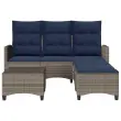 Ta vrtna sedežna garnitura v obliki črke L je odličen dodatek za vaš vrt, teraso ali teraso, saj zagotavlja udoben in vabljiv prostor za klepet z družino in prijatelji ali preprosto za sprostitev in uživanje na prostem. Trpežen material: PE ratan, znan tudi kot poli ratan, je močan sintetični material, ki ne potrebuje vzdrževanja in je videti kot naravni ratan. Je lahek, enostaven za čiščenje in se zaradi svoje vzdržljivosti in odpornosti na vremenske vplive pogosto uporablja za zunanje pohištvo.Nastavljivo naslonjalo: To zunanje pohištvo ima ročaj na vsakem sedežu. S potegom ročaja lahko naslonjalo nastavite v poljuben položaj in ga hitro vrnete v prvotni položaj.Udobno sedenje: To zunanje pohištvo z debelo oblazinjenimi blazinami zagotavlja udobno sedenje.Prevleko je mogoče odstraniti in oprati: Te sedežne blazine imajo odstranljive prevleke za lažje pranje in vzdrževanje.Robusten in stabilen okvir: Prašno barvan jekleni okvir zagotavlja, da je vrtno pohištvo močno in stabilno za vsakodnevno uporabo na prostem. Dobro je vedeti:Če želite, da vaše zunanje pohištvo ostane lepo, vam priporočamo, da ga zaščitite z vodoodporno prevleko.Maksimalna nosilnost (na sedež): 110 kgUV-odpornoPotrebno sestavljanje: DaKavč v obliki črke L:Barva: SivaMaterial: PE ratan, jeklen okvir s prašnim premazomDimenzije: 176 x 138/125 x 83/91 cm (Š x G x V)Širina sedeža (dvosed): 110 cmŠirina sedeža (lounger): 55 cmGlobina sedeža: 55/110 cmVišina sedeža, od tal (brez blazine): 36 cmVišina naslonjala za roke, merjena od tal: 61 cmPodnožje/tabla:Barva: SivaMaterial: PE ratan, jeklen okvir s prašnim premazomDimenzije: 55 x 55 x 36 cm (Š x G x V)Blazina:Barva: Mornarsko modraMaterial prevleke: Tkanina (100 % poliester)Polnilo sedežne blazine: PenaPolnilo hrbtne blazine: bombažna vlaknaDimenzije sedežne blazine: 58 x 58 x 3 cm (Š x G x T)Dimenzije hrbtne blazine: 70 x 57 x 10 cm (Š x G x T)Dimenzije blazine za stolček: 55 x 55 x 3 cm (Š x G x D)Paket vsebuje:1 x Kavč L oblike2 x Stolček za noge4 x Sedežna blazina s snemljivo in pralno prevleko3 x Blazina za hrbet2 x Blazina za stolček s snemljivo in pralno prevleko 3328644