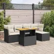 Ta vrtna sedežna garnitura je popoln dodatek za vaše dvorišče, teraso ali verando, saj zagotavlja udoben in vabljiv prostor za klepet z družino in prijatelji ali preprosto za sprostitev in uživanje na prostem. Trpežen material: PE ratan, znan tudi kot poli ratan, je močan sintetični material, ki ne potrebuje vzdrževanja in je videti kot naravni ratan. Je lahek, enostaven za čiščenje in se zaradi svoje vzdržljivosti in odpornosti na vremenske vplive pogosto uporablja za zunanje pohištvo.Funkcija shranjevanja z vodoodporno torbo: Vrtno pohištvo ima pod sedežem prostor za shranjevanje, opremljen z vodoodporno torbo za shranjevanje blazin, igrač in drugih stvari. Notranjo torbo je mogoče varno pritrditi na zunanje pohištvo s kavljem in zanko za večjo stabilnost.Nastavljiva mizna plošča: Z dvigom mizne plošče lahko mizo povišate, s čimer se zunanja klubska mizica spremeni v jedilno mizo. Popolna je za sprejemanje gostov ali uživanje v obrokih na prostem.Prevleko je mogoče odstraniti in oprati: Te sedežne blazine imajo odstranljive prevleke za lažje pranje in vzdrževanje.Modularna zasnova: Ta komplet zunanjega pohištva ima modularno zasnovo, zaradi česar je popolnoma prilagodljiv in enostaven za premikanje, tako da lahko zunanjo garnituro postavite kakor koli želite. Dobro je vedeti:Če želite, da vaše zunanje pohištvo ostane lepo, vam priporočamo, da ga zaščitite z vodoodporno prevleko.Dimenzije vodoodporne vreče: 55 x 53 x 34 cm (D x Š x V)Maksimalna nosilnost (na sedež): 110 kgUV-odpornoPlastične nastavljive nogePotrebno sestavljanje: DaKotni sedež:Barva: ČrnaMaterial: PE ratan, jeklen okvir s prašnim premazomDimenzije: 62 x 62 x 69 cm (Š x G x V)Velikost sedeža: 55 x 55 cm (Š x G)Višina sedeža od tal (brez blazine): 37 cmSrednji sedež:Barva: ČrnaMaterial: PE ratan, jeklen okvir s prašnim premazomDimenzije: 55 x 62 x 69 cm (Š x G x V)Velikost sedeža: 55 x 55 cm (Š x G)Višina sedeža od tal (brez blazine): 37 cmStolček za noge:Barva: ČrnaMaterial: PE ratan, jeklen okvir s prašnim premazomDimenzije: 55 x 55 x 37 cm (Š x G x V)Miza:Barva: ČrnaMaterial: PE ratan, prašno premazano jeklo, trden akacijev les z oljnim premazomDimenzije: 100 x 55 x 44/73 cm (D x Š x V)Blazina:Barva: Kremno belaMaterial prevleke: Tkanina (100 % poliester)Polnilo sedežne blazine: PenaPolnilo hrbtne blazine: bombažna vlaknaDimenzije sedežne blazine: 55 x 55 x 3 cm (Š x G x D)Dimenzije hrbtne blazine: 55 x 45 x 13 cm (D x Š x D)Paket vsebuje:1 x Vrtna miza2 x Kotni kavč s funkcijo shranjevanja z vodoodporno vrečo2 x Srednji kavč s funkcijo shranjevanja z vodoodporno vrečo1 x Stolček za noge s funkcijo shranjevanja z vodoodporno vrečo6 x Blazina za hrbet5 x Sedežna blazina s snemljivo pralno prevleko 3326912