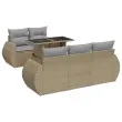 Ta vrtna sedežna garnitura je popoln dodatek za vaše dvorišče, teraso ali verando, saj zagotavlja udoben in vabljiv prostor za klepet z družino in prijatelji ali preprosto za sprostitev in uživanje na prostem. Trpežen material: PE ratan, znan tudi kot poli ratan, je močan sintetični material, ki ne potrebuje vzdrževanja in je videti kot naravni ratan. Je lahek, enostaven za čiščenje in se zaradi svoje vzdržljivosti in odpornosti na vremenske vplive pogosto uporablja za zunanje pohištvo.Funkcija shranjevanja z vodoodporno vrečo: Vsak vrtni sedež ima pod sedežem prostor za shranjevanje, opremljen z vodoodporno vrečo za shranjevanje blazin, igrač in drugih predmetov. Notranja torba ima zgornji pokrov in jo je mogoče varno pritrditi na sedež s kavljem in zanko za večjo stabilnost.Nastavljiva mizna plošča: Z dvigom mizne plošče lahko mizo povišate, s čimer se zunanja klubska mizica spremeni v jedilno mizo. Popolna je za sprejemanje gostov ali uživanje v obrokih na prostem.Prevleko je mogoče odstraniti in oprati: Te sedežne blazine imajo odstranljive prevleke za lažje pranje in vzdrževanje.Robusten in stabilen okvir: Jeklen okvir s prašnim premazom je močan, stabilen, trpežen ter odporen na korozijo in slabe vremenske razmere, kar zagotavlja dolgotrajno delovanje. Dobro je vedeti:Če želite, da vaše zunanje pohištvo ostane lepo, vam priporočamo, da ga zaščitite z vodoodporno prevleko.Dimenzije vodoodporne vreče: 55 x 53 x 34 cm (D x Š x V)Največja dovoljena teža (na sedež): 110 kgUV-odpornoPlastične nastavljive nogePotrebno sestavljanje: DaSrednji sedež:Barva: BežMaterial: PE ratan, jeklen okvir s prašnim premazomDimenzije: 55 x 62 x 69 cm (Š x G x V)Velikost sedeža: 55 x 55 cm (Š x G)Višina sedeža od tal (brez blazine): 37 cmKavč z naslonjali za roke:Barva: BežMaterial: PE ratan, jeklen okvir s prašnim premazomDimenzije: 71 x 62 x 69 cm (Š x G x V)Velikost sedeža: 55 x 55 cm (Š x G)Višina sedeža od tal (brez blazine): 37 cmVišina naslonjal za roke od tal: 55 cmMiza:Barva: BežMaterial: PE ratan, jeklo s prašnim premazom, kaljeno stekloDimenzije: 100 x 55 x 44/73 cm (D x Š x V)Blazina:Barva: Svetlo sivaMaterial prevleke: Tkanina (100 % poliester)Polnilo sedežne blazine: PenaPolnilo hrbtne blazine: bombažna vlaknaDimenzije sedežne blazine: 55 x 55 x 3 cm (Š x G x D)Dimenzije hrbtne blazine: 55 x 45 x 13 cm (D x Š x D)Paket vsebuje:1 x Srednji kavč s funkcijo shranjevanja z vodoodporno vrečo4 x Kavč s funkcijo shranjevanja z vodoodporno vrečo1 x Miza5 x Blazina za hrbet5 x Sedežna blazina s snemljivo pralno prevleko 3326570