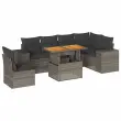 Ta vrtna sedežna garnitura je popoln dodatek za vaše dvorišče, teraso ali verando, saj zagotavlja udoben in vabljiv prostor za klepet z družino in prijatelji ali preprosto za sprostitev in uživanje na prostem. Trpežen material: PE ratan, znan tudi kot poli ratan, je močan sintetični material, ki ne potrebuje vzdrževanja in je videti kot naravni ratan. Je lahek, enostaven za čiščenje in se zaradi svoje vzdržljivosti in odpornosti na vremenske vplive pogosto uporablja za zunanje pohištvo.Funkcija shranjevanja z vodoodporno torbo: Vrtno pohištvo ima pod sedežem prostor za shranjevanje, opremljen z vodoodporno torbo za shranjevanje blazin, igrač in drugih stvari. Notranjo torbo je mogoče varno pritrditi na zunanje pohištvo s kavljem in zanko za večjo stabilnost.Nastavljiva mizna plošča: Z dvigom mizne plošče lahko mizo povišate, s čimer se zunanja klubska mizica spremeni v jedilno mizo. Popolna je za sprejemanje gostov ali uživanje v obrokih na prostem.Prevleko je mogoče odstraniti in oprati: Te sedežne blazine imajo odstranljive prevleke za lažje pranje in vzdrževanje.Modularna zasnova: Ta komplet zunanjega pohištva ima modularno zasnovo, zaradi česar je popolnoma prilagodljiv in enostaven za premikanje, tako da lahko zunanjo garnituro postavite kakor koli želite. Dobro je vedeti:Če želite, da vaše zunanje pohištvo ostane lepo, vam priporočamo, da ga zaščitite z vodoodporno prevleko.Dimenzije vodoodporne vreče: 55 x 53 x 34 cm (D x Š x V)Maksimalna nosilnost (na sedež): 110 kgUV-odpornoPlastične nastavljive nogePotrebno sestavljanje: DaKotni sedež:Barva: SivaMaterial: PE ratan, jeklen okvir s prašnim premazomDimenzije: 62 x 62 x 69 cm (Š x G x V)Velikost sedeža: 55 x 55 cm (Š x G)Višina sedeža od tal (brez blazine): 37 cmKotni sedež s naslonom za roke iz ratana:Barva: SivaMaterial: PE ratan, jeklen okvir s prašnim premazomDimenzije: 83 x 62 x 69 cm (Š x G x V)Velikost sedeža: 55 x 55 cm (Š x G)Višina sedeža od tal (brez blazine): 37 cmVišina naslonjal za roke od tal: 55 cmŠirina naslona za roke: 27,5 cmSrednji sedež:Barva: SivaMaterial: PE ratan, jeklen okvir s prašnim premazomDimenzije: 55 x 62 x 69 cm (Š x G x V)Velikost sedeža: 55 x 55 cm (Š x G)Višina sedeža od tal (brez blazine): 37 cmMiza:Barva: SivaMaterial: PE ratan, prašno premazano jeklo, trden akacijev les z oljnim premazomDimenzije: 100 x 55 x 44/73 cm (D x Š x V)Blazina:Barva: Temno sivaMaterial prevleke: Tkanina (100 % poliester)Polnilo sedežne blazine: PenaPolnilo hrbtne blazine: bombažna vlaknaDimenzije sedežne blazine: 55 x 55 x 3 cm (Š x G x D)Dimenzije hrbtne blazine: 55 x 45 x 13 cm (D x Š x D)Paket vsebuje:1 x Vrtna miza1 x Kotni kavč s funkcijo shranjevanja z vodoodporno vrečo2 x Kotni sedež z naslonom za roke iz ratana s funkcijo shranjevanja z vodoodporno torbo3 x Srednji kavč s funkcijo shranjevanja z vodoodporno vrečo7 x Hrbtna blazina6 x Sedežna blazina s snemljivo pralno prevleko 3327385