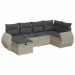 Ta vrtna sedežna garnitura je popoln dodatek za vaše dvorišče, teraso ali verando, saj zagotavlja udoben in vabljiv prostor za klepet z družino in prijatelji ali preprosto za sprostitev in uživanje na prostem. Trpežen material: PE ratan, znan tudi kot poli ratan, je močan sintetični material, ki ne potrebuje vzdrževanja in je videti kot naravni ratan. Je lahek, enostaven za čiščenje in se zaradi svoje vzdržljivosti in odpornosti na vremenske vplive pogosto uporablja za zunanje pohištvo.Funkcija shranjevanja z vodoodporno torbo: Vrtno pohištvo ima pod sedežem prostor za shranjevanje, opremljen z vodoodporno torbo za shranjevanje blazin, igrač in drugih stvari. Notranjo torbo je mogoče varno pritrditi na zunanje pohištvo s kavljem in zanko za večjo stabilnost.Vsestranski stolček za noge: Stolček je vsestransko uporaben, saj služi kot udoben naslon za noge, ko ležite na kavču, ali kot dodaten sedež na vrtu.Prevleko je mogoče odstraniti in oprati: Te sedežne blazine imajo odstranljive prevleke za lažje pranje in vzdrževanje.Modularna zasnova: Ta komplet zunanjega pohištva ima modularno zasnovo, zaradi česar je popolnoma prilagodljiv in enostaven za premikanje, tako da lahko zunanjo garnituro postavite kakor koli želite. Dobro je vedeti:Če želite, da vaše zunanje pohištvo ostane lepo, vam priporočamo, da ga zaščitite z vodoodporno prevleko.Dimenzije vodoodporne vreče: 55 x 53 x 34 cm (D x Š x V)Največja dovoljena teža (na sedež): 110 kgUV-odpornoPlastične nastavljive nogePotrebno sestavljanje: DaKavč z naslonjali za roke:Barva: Svetlo sivaMaterial: PE ratan, jeklen okvir s prašnim premazomDimenzije: 71 x 62 x 69 cm (Š x G x V)Velikost sedeža: 55 x 55 cm (Š x G)Višina sedeža od tal (brez blazine): 37 cmVišina naslonjal za roke od tal: 55 cmKotni sedež:Barva: Svetlo sivaMaterial: PE ratan, jeklen okvir s prašnim premazomDimenzije: 62 x 62 x 69 cm (Š x G x V)Velikost sedeža: 55 x 55 cm (Š x G)Višina sedeža od tal (brez blazine): 37 cmSrednji sedež:Barva: Svetlo sivaMaterial: PE ratan, jeklen okvir s prašnim premazomDimenzije: 55 x 62 x 69 cm (Š x G x V)Velikost sedeža: 55 x 55 cm (Š x G)Višina sedeža od tal (brez blazine): 37 cmStolček za noge:Barva: Svetlo sivaMaterial: PE ratan, jeklen okvir s prašnim premazomDimenzije: 55 x 55 x 37 cm (Š x G x V)Blazina:Barva: Temno sivaMaterial prevleke: Tkanina (100 % poliester)Polnilo sedežne blazine: PenaPolnilo hrbtne blazine: bombažna vlaknaDimenzije sedežne blazine: 55 x 55 x 3 cm (Š x G x D)Dimenzije hrbtne blazine: 55 x 45 x 13 cm (D x Š x D)Paket vsebuje:2 x Kavč s funkcijo shranjevanja z vodoodporno vrečo1 x Kotni kavč s funkcijo shranjevanja z vodoodporno vrečo2 x Srednji kavč s funkcijo shranjevanja z vodoodporno vrečo1 x Stolček s funkcijo shranjevanja6 x Blazina za hrbet6 x Sedežna blazina s snemljivo pralno prevleko 3325588