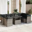 Ta vrtna sedežna garnitura je popoln dodatek za vaše dvorišče, teraso ali verando, saj zagotavlja udoben in vabljiv prostor za klepet z družino in prijatelji ali preprosto za sprostitev in uživanje na prostem. Trpežen material: PE ratan, znan tudi kot poli ratan, je močan sintetični material, ki ne potrebuje vzdrževanja in je videti kot naravni ratan. Je lahek, enostaven za čiščenje in se zaradi svoje vzdržljivosti in odpornosti na vremenske vplive pogosto uporablja za zunanje pohištvo.Funkcija shranjevanja z vodoodporno vrečo: Vsak vrtni sedež ima pod sedežem prostor za shranjevanje, opremljen z vodoodporno vrečo za shranjevanje blazin, igrač in drugih predmetov. Notranja torba ima zgornji pokrov in jo je mogoče varno pritrditi na sedež s kavljem in zanko za večjo stabilnost.Nastavljiva mizna plošča: Z dvigom mizne plošče lahko mizo povišate, s čimer se zunanja klubska mizica spremeni v jedilno mizo. Popolna je za sprejemanje gostov ali uživanje v obrokih na prostem.Prevleko je mogoče odstraniti in oprati: Te sedežne blazine imajo odstranljive prevleke za lažje pranje in vzdrževanje.Robusten in stabilen okvir: Jeklen okvir s prašnim premazom je močan, stabilen, trpežen ter odporen na korozijo in slabe vremenske razmere, kar zagotavlja dolgotrajno delovanje. Dobro je vedeti:Če želite, da vaše zunanje pohištvo ostane lepo, vam priporočamo, da ga zaščitite z vodoodporno prevleko.Dimenzije vodoodporne vreče: 55 x 53 x 34 cm (D x Š x V)Največja dovoljena teža (na sedež): 110 kgUV-odpornoPlastične nastavljive nogePotrebno sestavljanje: DaSrednji sedež:Barva: SivaMaterial: PE ratan, jeklen okvir s prašnim premazomDimenzije: 55 x 62 x 69 cm (Š x G x V)Velikost sedeža: 55 x 55 cm (Š x G)Višina sedeža od tal (brez blazine): 37 cmKotni sedež:Barva: SivaMaterial: PE ratan, jeklen okvir s prašnim premazomDimenzije: 62 x 62 x 69 cm (Š x G x V)Velikost sedeža: 55 x 55 cm (Š x G)Višina sedeža od tal (brez blazine): 37 cmMiza:Barva: SivaMaterial: PE ratan, jeklo s prašnim premazom, kaljeno stekloDimenzije: 100 x 55 x 44/73 cm (D x Š x V)Blazina:Barva: Temno sivaMaterial prevleke: Tkanina (100 % poliester)Polnilo sedežne blazine: PenaPolnilo hrbtne blazine: bombažna vlaknaDimenzije sedežne blazine: 55 x 55 x 3 cm (Š x G x D)Dimenzije hrbtne blazine: 55 x 45 x 13 cm (D x Š x D)Paket vsebuje:5 x Srednji sedež s funkcijo shranjevanja z vodoodporno vrečo4 x Kotni sedež s funkcijo shranjevanja z vodoodporno vrečo1 x Miza13 x Blazina za hrbet9 x Sedežna blazina s snemljivo in pralno prevleko 3326221