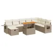 Ta vrtna sedežna garnitura je popoln dodatek za vaše dvorišče, teraso ali verando, saj zagotavlja udoben in vabljiv prostor za klepet z družino in prijatelji ali preprosto za sprostitev in uživanje na prostem.Trpežen material: PE ratan, znan tudi kot poli ratan, je močan sintetični material, ki ne potrebuje vzdrževanja in je videti kot naravni ratan. Je lahek, enostaven za čiščenje in se zaradi svoje vzdržljivosti in odpornosti na vremenske vplive pogosto uporablja za zunanje pohištvo.Funkcija shranjevanja z vodoodporno vrečo: Vsak vrtni sedež ima prostor za shranjevanje pod sedežem, skupaj z vodoodporno vrečo za shranjevanje blazin, igrač in drugih predmetov. Notranje vreče imajo zgornjo prevleko in jih je mogoče s pomočjo primenjal varno pritrditi na sedeže za dodatno varnost.Priročna stranska mizica: To zunanje pohištvo ima zložljivo stransko mizico s plinsko vzmetjo, ki zagotavlja priročen prostor za shranjevanje vaših potrebščin na dosegu roke.Prevleko je mogoče odstraniti in oprati: Te sedežne blazine imajo odstranljive prevleke za lažje pranje in vzdrževanje.Modularna zasnova: Ta komplet zunanjega pohištva ima modularno zasnovo, zaradi česar je popolnoma prilagodljiv in enostaven za premikanje, tako da lahko zunanjo garnituro postavite kakor koli želite.Dobro je vedeti:Če želite, da vaše zunanje pohištvo ostane lepo, vam priporočamo, da ga zaščitite z vodoodporno prevleko.Dimenzije vodoodporne vreče: 55 x 53 x 34 cm (D x Š x V)Največja dovoljena teža (na sedež): 110 kgUV-odpornoPlastične nastavljive nogePotrebno sestavljanje: DaSrednji sedež:Barva: BežMaterial: PE ratan, jeklen okvir s prašnim premazomDimenzije: 55 x 62 x 69 cm (Š x G x V)Velikost sedeža: 55 x 55 cm (Š x G)Višina sedeža od tal (brez blazine): 37 cmKotni sedež:Barva: BežMaterial: PE ratan, jeklen okvir s prašnim premazomDimenzije: 62 x 62 x 69 cm (Š x G x V)Velikost sedeža: 55 x 55 cm (Š x G)Višina sedeža od tal (brez blazine): 37 cmKavč z naslonjali za roke:Barva: BežMaterial: PE ratan, jeklen okvir s prašnim premazomDimenzije: 62 x 62 x 69 cm (Š x G x V)Velikost sedeža: 55 x 55 cm (Š x G)Višina sedeža od tal (brez blazine): 37 cmVišina naslonjal za roke od tal: 55 cmŠirina naslonjala za roke: 6 cmVelikost stranske mizice: 25 x 23 cm (D x Š)Stolček za noge:Barva: BežMaterial: PE ratan, jeklen okvir s prašnim premazomDimenzije: 55 x 55 x 37 cm (Š x G x V)Miza:Barva: BežMaterial: PE ratan, prašno premazano jeklo, trden akacijev les z oljnim premazomDimenzije: 100 x 55 x 44/73 cm (D x Š x V)Blazina:Barva: Kremno belaMaterial prevleke: Tkanina (100 % poliester)Polnilo sedežne blazine: PenaPolnilo hrbtne blazine: bombažna vlaknaDimenzije sedežne blazine: 55 x 55 x 3 cm (Š x G x D)Dimenzije hrbtne blazine: 55 x 45 x 13 cm (D x Š x D)Paket vsebuje:4 x Srednji kavč s funkcijo shranjevanja z vodoodporno vrečo1 x Kotni kavč s funkcijo shranjevanja z vodoodporno vrečo2 x Kavč s funkcijo shranjevanja z vodoodporno vrečo1 x Stolček za noge s funkcijo shranjevanja z vodoodporno vrečo1 x Miza8 x Blazina za hrbet8 x Sedežna blazina s snemljivo in pralno prevleko 3328045