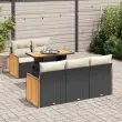 Ta vrtna sedežna garnitura je popoln dodatek za vaše dvorišče, teraso ali verando, saj zagotavlja udoben in vabljiv prostor za klepet z družino in prijatelji ali preprosto za sprostitev in uživanje na prostem. Trpežen material: PE ratan, znan tudi kot poli ratan, je močan sintetični material, ki ne potrebuje vzdrževanja in je videti kot naravni ratan. Je lahek, enostaven za čiščenje in se zaradi svoje vzdržljivosti in odpornosti na vremenske vplive pogosto uporablja za zunanje pohištvo.Funkcija shranjevanja z vodoodporno vrečo: Vsak vrtni sedež ima prostor za shranjevanje pod sedežem, skupaj z vodoodporno vrečo za shranjevanje blazin, igrač in drugih predmetov. Notranje vreče imajo zgornjo prevleko in jih je mogoče s pomočjo primenjal varno pritrditi na sedeže za dodatno varnost.Prevleko je mogoče odstraniti in oprati: Te sedežne blazine imajo odstranljive prevleke za lažje pranje in vzdrževanje.Modularna zasnova: Ta komplet zunanjega pohištva ima modularno zasnovo, zaradi česar je popolnoma prilagodljiv in enostaven za premikanje, tako da lahko zunanjo garnituro postavite kakor koli želite. Dobro je vedeti:Če želite, da vaše zunanje pohištvo ostane lepo, vam priporočamo, da ga zaščitite z vodoodporno prevleko.Dimenzije vodoodporne vreče: 55 x 53 x 34 cm (D x Š x V)Največja dovoljena teža (na sedež): 110 kgUV-odpornoPlastične nastavljive nogePotrebno sestavljanje: DaSrednji sedež:Barva: ČrnaMaterial: PE ratan, jeklen okvir s prašnim premazomDimenzije: 55 x 62 x 69 cm (Š x G x V)Velikost sedeža: 55 x 55 cm (Š x G)Višina sedeža od tal (brez blazine): 37 cmKavč z naslonjali za roke:Barva: ČrnaMaterial: PE ratan, prašno premazano jeklo, trden akacijev les z oljnim premazomDimenzije: 59 x 62 x 69 cm (Š x G x V)Velikost sedeža: 55 x 55 cm (Š x G)Višina sedeža od tal (brez blazine): 37 cmMiza:Barva: ČrnaMaterial: PE ratan, prašno premazano jeklo, trden akacijev les z oljnim premazomDimenzije: 100 x 55 x 44/73 cm (D x Š x V)Blazina:Barva: BelaMaterial prevleke: Tkanina (100 % poliester)Polnilo sedežne blazine: PenaPolnilo hrbtne blazine: bombažna vlaknaDimenzije sedežne blazine: 55 x 55 x 3 cm (Š x G x D)Dimenzije hrbtne blazine: 55 x 45 x 13 cm (D x Š x D)Paket vsebuje:1 x Srednji kavč s funkcijo shranjevanja z vodoodporno vrečo4 x Kavč s funkcijo shranjevanja z vodoodporno vrečo1 x Miza5 x Blazina za hrbet5 x Sedežna blazina s snemljivo pralno prevleko 3327661