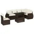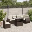 Ta vrtna sedežna garnitura je popoln dodatek za vaše dvorišče, teraso ali verando, saj zagotavlja udoben in vabljiv prostor za klepet z družino in prijatelji ali preprosto za sprostitev in uživanje na prostem. Vzdržljiv material: PE ratan, znan tudi kot poli ratan, je močan sintetični material, ki zahteva malo vzdrževanja in je videti kot naravni ratan. Je lahek, enostaven za čiščenje in se zaradi svoje vzdržljivosti in odpornosti na vremenske vplive pogosto uporablja za zunanje pohištvo.Nastavljiva mizna plošča: Z dvigom mizne plošče lahko mizo povišate, s čimer se zunanja klubska mizica spremeni v jedilno mizo. Popolna je za sprejemanje gostov ali uživanje v obrokih na prostem.Udobno sedenje: To zunanje pohištvo z debelo oblazinjenimi blazinami zagotavlja udobno sedenje.Prevleko je mogoče odstraniti in oprati: Te sedežne blazine imajo odstranljive prevleke za lažje pranje in vzdrževanje.Modularna zasnova: Ta komplet zunanjega pohištva ima modularno zasnovo, zaradi česar je popolnoma prilagodljiv in enostaven za premikanje, tako da lahko zunanjo garnituro postavite kakor koli želite. Dobro je vedeti:Če želite, da vaše zunanje pohištvo ostane lepo, vam priporočamo, da ga zaščitite z vodoodporno prevleko.Maksimalna nosilnost (na sedež): 110 kgUV-odpornoPotrebno sestavljanje: DaKotni sedež:Barva: RjavaMaterial: PE ratan, jeklen okvir s prašnim premazomDimenzije: 62 x 62 x 69 cm (Š x G x V)Velikost sedeža: 55 x 55 cm (Š x G)Višina sedeža, merjena od tal: 37 cmSrednji sedež:Barva: RjavaMaterial: PE ratan, jeklen okvir s prašnim premazomDimenzije: 55 x 62 x 69 cm (Š x G x V)Velikost sedeža: 55 x 55 cm (Š x G)Višina sedeža, merjena od tal: 37 cmKavč z naslonjali za roke:Barva: RjavaMaterial: PE ratan, jeklen okvir s prašnim premazomDimenzije: 70 x 62 x 69 cm (Š x G x V)Velikost sedeža: 55 x 55 cm (Š x G)Višina sedeža, merjena od tal: 37 cmVišina naslonjal za roke od tal: 55 cmMiza:Barva: RjavaMaterial: PE ratan, jeklo s prašnim premazom, kaljeno stekloDimenzije: 100 x 55 x 44/73 cm (D x Š x V)Blazina:Barva: Kremno bela Material prevleke: Tkanina (100 % poliester)Polnilo sedežne blazine: PenaPolnilo hrbtne blazine: bombažna vlaknaDimenzije sedežne blazine: 55 x 55 x 3 cm (Š x G x D)Dimenzije hrbtne blazine: 55 x 45 x 13 cm (D x Š x D)Paket vsebuje:1 x Kotni sedež3 x Srednji sedež2 x Kavč z naslonjali za roke1 x Vrtna miza7 x Hrbtna blazina6 x Sedežna blazina s snemljivo pralno prevleko 3268573