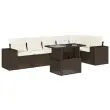 Ta vrtna sedežna garnitura je popoln dodatek za vaše dvorišče, teraso ali verando, saj zagotavlja udoben in vabljiv prostor za klepet z družino in prijatelji ali preprosto za sprostitev in uživanje na prostem. Vzdržljiv material: PE ratan, znan tudi kot poli ratan, je močan sintetični material, ki zahteva malo vzdrževanja in je videti kot naravni ratan. Je lahek, enostaven za čiščenje in se zaradi svoje vzdržljivosti in odpornosti na vremenske vplive pogosto uporablja za zunanje pohištvo.Nastavljiva mizna plošča: Z dvigom mizne plošče lahko mizo povišate, s čimer se zunanja klubska mizica spremeni v jedilno mizo. Popolna je za sprejemanje gostov ali uživanje v obrokih na prostem.Udobno sedenje: To zunanje pohištvo z debelo oblazinjenimi blazinami zagotavlja udobno sedenje.Prevleko je mogoče odstraniti in oprati: Te sedežne blazine imajo odstranljive prevleke za lažje pranje in vzdrževanje.Modularna zasnova: Ta komplet zunanjega pohištva ima modularno zasnovo, zaradi česar je popolnoma prilagodljiv in enostaven za premikanje, tako da lahko zunanjo garnituro postavite kakor koli želite. Dobro je vedeti:Če želite, da vaše zunanje pohištvo ostane lepo, vam priporočamo, da ga zaščitite z vodoodporno prevleko.Maksimalna nosilnost (na sedež): 110 kgUV-odpornoPotrebno sestavljanje: DaKotni sedež:Barva: RjavaMaterial: PE ratan, jeklen okvir s prašnim premazomDimenzije: 62 x 62 x 69 cm (Š x G x V)Velikost sedeža: 55 x 55 cm (Š x G)Višina sedeža, merjena od tal: 37 cmSrednji sedež:Barva: RjavaMaterial: PE ratan, jeklen okvir s prašnim premazomDimenzije: 55 x 62 x 69 cm (Š x G x V)Velikost sedeža: 55 x 55 cm (Š x G)Višina sedeža, merjena od tal: 37 cmKavč z naslonjali za roke:Barva: RjavaMaterial: PE ratan, jeklen okvir s prašnim premazomDimenzije: 83 x 62 x 69 cm (Š x G x V)Velikost sedeža: 55 x 55 cm (Š x G)Višina sedeža, merjena od tal: 37 cmVišina naslonjal za roke od tal: 55 cmMiza:Barva: RjavaMaterial: PE ratan, jeklo s prašnim premazom, kaljeno stekloDimenzije: 100 x 55 x 44/73 cm (D x Š x V)Blazina:Barva: Kremno bela Material prevleke: Tkanina (100 % poliester)Polnilo sedežne blazine: PenaPolnilo hrbtne blazine: bombažna vlaknaDimenzije sedežne blazine: 55 x 55 x 3 cm (Š x G x D)Dimenzije hrbtne blazine: 55 x 45 x 13 cm (D x Š x D)Paket vsebuje:1 x Kotni sedež3 x Srednji sedež2 x Kavč z naslonjali za roke1 x Vrtna miza7 x Hrbtna blazina6 x Sedežna blazina s snemljivo pralno prevleko 3269183