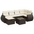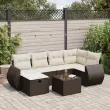 Ta vrtna sedežna garnitura je popoln dodatek za vaše dvorišče, teraso ali verando, saj zagotavlja udoben in vabljiv prostor za klepet z družino in prijatelji ali preprosto za sprostitev in uživanje na prostem. Trpežen material: PE ratan, znan tudi kot poli ratan, je močan sintetični material, ki ne potrebuje vzdrževanja in je videti kot naravni ratan. Je lahek, enostaven za čiščenje in se zaradi svoje vzdržljivosti in odpornosti na vremenske vplive pogosto uporablja za zunanje pohištvo.Funkcija shranjevanja z vodoodporno torbo: Vrtno pohištvo ima pod sedežem prostor za shranjevanje, opremljen z vodoodporno torbo za shranjevanje blazin, igrač in drugih stvari. Notranjo torbo je mogoče varno pritrditi na zunanje pohištvo s kavljem in zanko za večjo stabilnost.Vsestranski stolček za noge: Stolček je vsestransko uporaben, saj služi kot udoben naslon za noge, ko ležite na kavču, ali kot dodaten sedež na vrtu.Prevleko je mogoče odstraniti in oprati: Te sedežne blazine imajo odstranljive prevleke za lažje pranje in vzdrževanje.Modularna zasnova: Ta komplet zunanjega pohištva ima modularno zasnovo, zaradi česar je popolnoma prilagodljiv in enostaven za premikanje, tako da lahko zunanjo garnituro postavite kakor koli želite. Dobro je vedeti:Če želite, da vaše zunanje pohištvo ostane lepo, vam priporočamo, da ga zaščitite z vodoodporno prevleko.Dimenzije vodoodporne vreče: 55 x 53 x 34 cm (D x Š x V)Največja dovoljena teža (na sedež): 110 kgUV-odpornoPlastične nastavljive nogePotrebno sestavljanje: DaKavč z naslonjali za roke:Barva: RjavaMaterial: PE ratan, jeklen okvir s prašnim premazomDimenzije: 71 x 62 x 69 cm (Š x G x V)Velikost sedeža: 55 x 55 cm (Š x G)Višina sedeža od tal (brez blazine): 37 cmVišina naslonjal za roke od tal: 55 cmKotni sedež:Barva: RjavaMaterial: PE ratan, jeklen okvir s prašnim premazomDimenzije: 62 x 62 x 69 cm (Š x G x V)Velikost sedeža: 55 x 55 cm (Š x G)Višina sedeža od tal (brez blazine): 37 cmSrednji sedež:Barva: RjavaMaterial: PE ratan, jeklen okvir s prašnim premazomDimenzije: 55 x 62 x 69 cm (Š x G x V)Velikost sedeža: 55 x 55 cm (Š x G)Višina sedeža od tal (brez blazine): 37 cmStolček za noge:Barva: RjavaMaterial: PE ratan, jeklen okvir s prašnim premazomDimenzije: 55 x 55 x 37 cm (Š x G x V)Vrtna miza:Barva: RjavaMaterial: PE ratan, jeklo s prašnim premazom, kaljeno stekloDimenzije: 55 x 55 x 37 cm (Š x G x V)Blazina:Barva: Kremno belaMaterial prevleke: Tkanina (100 % poliester)Polnilo sedežne blazine: PenaPolnilo hrbtne blazine: bombažna vlaknaDimenzije sedežne blazine: 55 x 55 x 3 cm (Š x G x D)Dimenzije hrbtne blazine: 55 x 45 x 13 cm (D x Š x D) Paket vsebuje:2 x Kavč s funkcijo shranjevanja z vodoodporno vrečo1 x Kotni kavč s funkcijo shranjevanja z vodoodporno vrečo2 x Srednji kavč s funkcijo shranjevanja z vodoodporno vrečo1 x Stolček s funkcijo shranjevanja1 x Vrtna miza6 x Blazina za hrbet6 x Sedežna blazina s snemljivo pralno prevleko 3325599