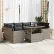 Ta vrtna sedežna garnitura je popoln dodatek za vaše dvorišče, teraso ali verando, saj zagotavlja udoben in vabljiv prostor za klepet z družino in prijatelji ali preprosto za sprostitev in uživanje na prostem. Trpežen material: PE ratan, znan tudi kot poli ratan, je močan sintetični material, ki ne potrebuje vzdrževanja in je videti kot naravni ratan. Je lahek, enostaven za čiščenje in se zaradi svoje vzdržljivosti in odpornosti na vremenske vplive pogosto uporablja za zunanje pohištvo.Funkcija shranjevanja z vodoodporno vrečo: Vsak vrtni sedež ima pod sedežem prostor za shranjevanje, opremljen z vodoodporno vrečo za shranjevanje blazin, igrač in drugih predmetov. Notranja torba ima zgornji pokrov in jo je mogoče varno pritrditi na sedež s kavljem in zanko za večjo stabilnost.Nastavljiva mizna plošča: Z dvigom mizne plošče lahko mizo povišate, s čimer se zunanja klubska mizica spremeni v jedilno mizo. Popolna je za sprejemanje gostov ali uživanje v obrokih na prostem.Prevleko je mogoče odstraniti in oprati: Te sedežne blazine imajo odstranljive prevleke za lažje pranje in vzdrževanje.Robusten in stabilen okvir: Jeklen okvir s prašnim premazom je močan, stabilen, trpežen ter odporen na korozijo in slabe vremenske razmere, kar zagotavlja dolgotrajno delovanje. Dobro je vedeti:Če želite, da vaše zunanje pohištvo ostane lepo, vam priporočamo, da ga zaščitite z vodoodporno prevleko.Dimenzije vodoodporne vreče: 55 x 53 x 34 cm (D x Š x V)Največja dovoljena teža (na sedež): 110 kgUV-odpornoPlastične nastavljive nogePotrebno sestavljanje: DaSrednji sedež:Barva: SivaMaterial: PE ratan, jeklen okvir s prašnim premazomDimenzije: 55 x 62 x 69 cm (Š x G x V)Velikost sedeža: 55 x 55 cm (Š x G)Višina sedeža od tal (brez blazine): 37 cmKotni sedež:Barva: SivaMaterial: PE ratan, jeklen okvir s prašnim premazomDimenzije: 62 x 62 x 69 cm (Š x G x V)Velikost sedeža: 55 x 55 cm (Š x G)Višina sedeža od tal (brez blazine): 37 cmKavč z naslonjali za roke:Barva: SivaMaterial: PE ratan, jeklen okvir s prašnim premazomDimenzije: 65,5 x 62 x 69 cm (Š x G x V)Velikost sedeža: 55 x 55 cm (Š x G)Višina sedeža od tal (brez blazine): 37 cmVišina naslonjal za roke od tal: 55 cmMiza:Barva: SivaMaterial: PE ratan, jeklo s prašnim premazom, kaljeno stekloDimenzije: 100 x 55 x 44/73 cm (D x Š x V)Blazina:Barva: Temno sivaMaterial prevleke: Tkanina (100 % poliester)Polnilo sedežne blazine: PenaPolnilo hrbtne blazine: bombažna vlaknaDimenzije sedežne blazine: 55 x 55 x 3 cm (Š x G x D)Dimenzije hrbtne blazine: 55 x 45 x 13 cm (D x Š x D)Paket vsebuje:2 x Srednji kavč s funkcijo shranjevanja z vodoodporno vrečo2 x Kotni kavč s funkcijo shranjevanja z vodoodporno vrečo2 x Kavč s funkcijo shranjevanja z vodoodporno vrečo1 x Miza8 x Blazina za hrbet6 x Sedežna blazina s snemljivo pralno prevleko 3326271