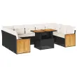 Ta vrtna sedežna garnitura je popoln dodatek za vaše dvorišče, teraso ali verando, saj zagotavlja udoben in vabljiv prostor za klepet z družino in prijatelji ali preprosto za sprostitev in uživanje na prostem. Trpežen material: PE ratan, znan tudi kot poli ratan, je močan sintetični material, ki ne potrebuje vzdrževanja in je videti kot naravni ratan. Je lahek, enostaven za čiščenje in se zaradi svoje vzdržljivosti in odpornosti na vremenske vplive pogosto uporablja za zunanje pohištvo.Funkcija shranjevanja z vodoodporno vrečo: Vsak vrtni sedež ima prostor za shranjevanje pod sedežem, skupaj z vodoodporno vrečo za shranjevanje blazin, igrač in drugih predmetov. Notranje vreče imajo zgornjo prevleko in jih je mogoče s pomočjo primenjal varno pritrditi na sedeže za dodatno varnost.Prevleko je mogoče odstraniti in oprati: Te sedežne blazine imajo odstranljive prevleke za lažje pranje in vzdrževanje.Modularna zasnova: Ta komplet zunanjega pohištva ima modularno zasnovo, zaradi česar je popolnoma prilagodljiv in enostaven za premikanje, tako da lahko zunanjo garnituro postavite kakor koli želite. Dobro je vedeti:Če želite, da vaše zunanje pohištvo ostane lepo, vam priporočamo, da ga zaščitite z vodoodporno prevleko.Dimenzije vodoodporne vreče: 55 x 53 x 34 cm (D x Š x V)Največja dovoljena teža (na sedež): 110 kgUV-odpornoPlastične nastavljive nogePotrebno sestavljanje: DaSrednji sedež:Barva: ČrnaMaterial: PE ratan, jeklen okvir s prašnim premazomDimenzije: 55 x 62 x 69 cm (Š x G x V)Velikost sedeža: 55 x 55 cm (Š x G)Višina sedeža od tal (brez blazine): 37 cmKotni sedež:Barva: ČrnaMaterial: PE ratan, jeklen okvir s prašnim premazomDimenzije: 62 x 62 x 69 cm (Š x G x V)Velikost sedeža: 55 x 55 cm (Š x G)Višina sedeža od tal (brez blazine): 37 cmKavč z naslonjali za roke:Barva: ČrnaMaterial: PE ratan, prašno premazano jeklo, trden akacijev les z oljnim premazomDimenzije: 59 x 62 x 69 cm (Š x G x V)Velikost sedeža: 55 x 55 cm (Š x G)Višina sedeža od tal (brez blazine): 37 cmMiza:Barva: ČrnaMaterial: PE ratan, prašno premazano jeklo, trden akacijev les z oljnim premazomDimenzije: 100 x 55 x 44/73 cm (D x Š x V)Blazina:Barva: BelaMaterial prevleke: Tkanina (100 % poliester)Polnilo sedežne blazine: PenaPolnilo hrbtne blazine: bombažna vlaknaDimenzije sedežne blazine: 55 x 55 x 3 cm (Š x G x D)Dimenzije hrbtne blazine: 55 x 45 x 13 cm (D x Š x D)Paket vsebuje:5 x Srednji sedež s funkcijo shranjevanja z vodoodporno vrečo2 x Kotni kavč s funkcijo shranjevanja z vodoodporno vrečo2 x Kavč s funkcijo shranjevanja z vodoodporno vrečo1 x Miza11 x Blazina za hrbet9 x Sedežna blazina s snemljivo in pralno prevleko 3327752