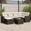 Ta vrtna sedežna garnitura je popoln dodatek za vaše dvorišče, teraso ali verando, saj zagotavlja udoben in vabljiv prostor za klepet z družino in prijatelji ali preprosto za sprostitev in uživanje na prostem. Trpežen material: PE ratan, znan tudi kot poli ratan, je močan sintetični material, ki ne potrebuje vzdrževanja in je videti kot naravni ratan. Je lahek, enostaven za čiščenje in se zaradi svoje vzdržljivosti in odpornosti na vremenske vplive pogosto uporablja za zunanje pohištvo.Funkcija shranjevanja z vodoodporno torbo: Vrtno pohištvo ima pod sedežem prostor za shranjevanje, opremljen z vodoodporno torbo za shranjevanje blazin, igrač in drugih stvari. Notranjo torbo je mogoče varno pritrditi na zunanje pohištvo s kavljem in zanko za večjo stabilnost.Vsestranski stolček za noge: Stolček je vsestransko uporaben, saj služi kot udoben naslon za noge, ko ležite na kavču, ali kot dodaten sedež na vrtu.Prevleko je mogoče odstraniti in oprati: Te sedežne blazine imajo odstranljive prevleke za lažje pranje in vzdrževanje.Modularna zasnova: Ta komplet zunanjega pohištva ima modularno zasnovo, zaradi česar je popolnoma prilagodljiv in enostaven za premikanje, tako da lahko zunanjo garnituro postavite kakor koli želite. Dobro je vedeti:Če želite, da vaše zunanje pohištvo ostane lepo, vam priporočamo, da ga zaščitite z vodoodporno prevleko.Dimenzije vodoodporne vreče: 55 x 53 x 34 cm (D x Š x V)Največja dovoljena teža (na sedež): 110 kgUV-odpornoPlastične nastavljive nogePotrebno sestavljanje: DaKavč z naslonjali za roke:Barva: RjavaMaterial: PE ratan, jeklen okvir s prašnim premazomDimenzije: 65,5 x 62 x 69 cm (Š x G x V)Velikost sedeža: 55 x 55 cm (Š x G)Višina sedeža od tal (brez blazine): 37 cmVišina naslonjal za roke od tal: 55 cmŠirina naslonjala za roke: 10 cmKotni sedež:Barva: RjavaMaterial: PE ratan, jeklen okvir s prašnim premazomDimenzije: 62 x 62 x 69 cm (Š x G x V)Velikost sedeža: 55 x 55 cm (Š x G)Višina sedeža od tal (brez blazine): 37 cmSrednji sedež:Barva: RjavaMaterial: PE ratan, jeklen okvir s prašnim premazomDimenzije: 55 x 62 x 69 cm (Š x G x V)Velikost sedeža: 55 x 55 cm (Š x G)Višina sedeža od tal (brez blazine): 37 cmStolček za noge:Barva: RjavaMaterial: PE ratan, jeklen okvir s prašnim premazomDimenzije: 55 x 55 x 37 cm (Š x G x V)Vrtna miza:Barva: RjavaMaterial: PE ratan, jeklo s prašnim premazom, kaljeno stekloDimenzije: 55 x 55 x 37 cm (Š x G x V)Blazina:Barva: Kremno belaMaterial prevleke: Tkanina (100 % poliester)Polnilo sedežne blazine: PenaPolnilo hrbtne blazine: bombažna vlaknaDimenzije sedežne blazine: 55 x 55 x 3 cm (Š x G x D)Dimenzije hrbtne blazine: 55 x 45 x 13 cm (D x Š x D) Paket vsebuje:2 x Kavč s funkcijo shranjevanja z vodoodporno vrečo1 x Kotni kavč s funkcijo shranjevanja z vodoodporno vrečo2 x Srednji kavč s funkcijo shranjevanja z vodoodporno vrečo1 x Stolček s funkcijo shranjevanja1 x Vrtna miza6 x Blazina za hrbet6 x Sedežna blazina s snemljivo pralno prevleko 3325399