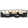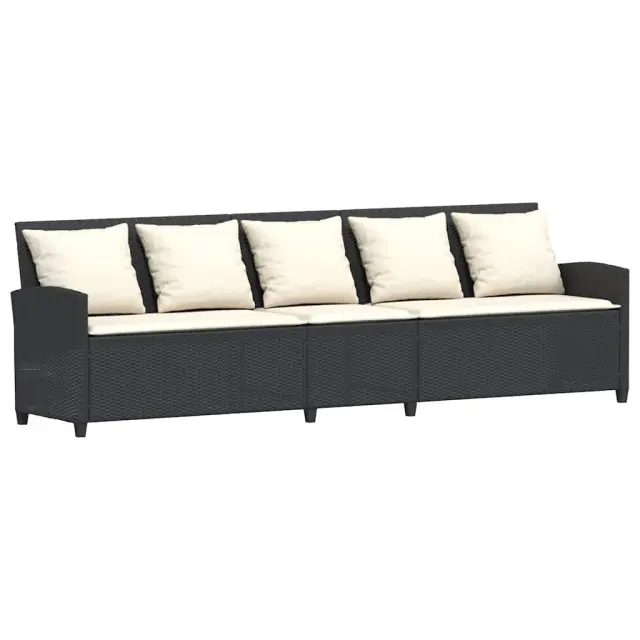 Ta vrtna sedežna garnitura v obliki črke L je odličen dodatek za vaš vrt, teraso ali teraso, saj zagotavlja udoben in vabljiv prostor za klepet z družino in prijatelji ali preprosto za sprostitev in uživanje na prostem. Trpežen material: PE ratan, znan tudi kot poli ratan, je močan sintetični material, ki ne potrebuje vzdrževanja in je videti kot naravni ratan. Je lahek, enostaven za čiščenje in se zaradi svoje vzdržljivosti in odpornosti na vremenske vplive pogosto uporablja za zunanje pohištvo.Stabilna mizna plošča, ki je enostavna za čiščenje: Ta vrtna miza ima ploščo iz akacijevega lesa, ki je čvrsta, vzdržljiva in jo je enostavno čistiti z vlažno krpo.Udobno sedenje: To zunanje pohištvo z debelo oblazinjenimi blazinami zagotavlja udobno sedenje.Vsestranski stolček za noge: Stolček je vsestransko uporaben, saj služi kot udoben naslon za noge, ko ležite na kavču, ali kot dodaten sedež na vrtu.Prevleko je mogoče odstraniti in oprati: Te sedežne blazine imajo odstranljive prevleke za lažje pranje in vzdrževanje. Dobro je vedeti:Če želite, da vaše zunanje pohištvo ostane lepo, vam priporočamo, da ga zaščitite z vodoodporno prevleko.Maks. nosilnost (na sedež): 110 kgUV-odpornoPotrebno sestavljanje: DaKavč v obliki črke L:Barva: ČrnaMaterial: PE ratan, jeklen okvir s prašnim premazomCelotne dimenzije: 269 x 181 x 87,5 cm (Š x G x V)Širina sedeža: 267 cmGlobina sedeža: 57 cmVišina sedeža od tal (brez blazine): 43 cmVišina naslonjala za roke, merjena od tal: 61 cmStolček:Barva: ČrnaMaterial: PE ratan, jeklen okvir s prašnim premazomDimenzije: 43 x 38 x 36 cm (Š x G x V)Višina sedeža, od tal (brez blazine): 36 cmMiza:Barva: ČrnaMaterial: PE ratan, jeklo s prašnim premazom, trden akacijev les z naravnim oljnim premazomDimenzije: 105 x 75 x 72 cm (D x Š x V)Blazina:Barva: Kremno belaMaterial prevleke: Tkanina (100 % poliester)Material za polnjenje hrbtne blazine Material: vlakna PPPolnilo sedežne blazine: PenaDimenzije blazine za hrbet: 53 x 43 x 12 cm (D x Š x D)Dimenzije sedežne blazine (L): 106 x 57 x 3 cm (Š x G x D)Dimenzije sedežne blazine (S): 55 x 57 x 3 cm (Š x G x D)Dimenzije sedežne blazine stolčka: 43 x 38 x 3 cm (Š x G x D)Paket vsebuje:1 x Vrtna miza1 x Kavč L oblike2 x Vrtni stolček8 x Hrbtna blazina s snemljivo in pralno prevleko3 x sedežna blazina s snemljivo in pralno prevleko (L)1 x sedežna blazina s snemljivo in pralno prevleko (S)2 x Sedežna blazina za stolček s snemljivo in pralno prevleko 3365324