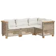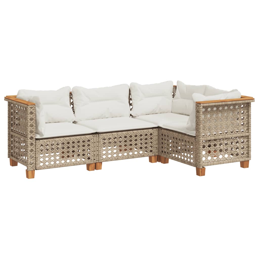 Ta vrtna sedežna garnitura je popoln dodatek za vaše dvorišče, teraso ali verando, saj zagotavlja udoben in vabljiv prostor za klepet z družino in prijatelji ali preprosto za sprostitev in uživanje na prostem. Vzdržljiv material: PE ratan, znan tudi kot poli ratan, je močan sintetični material, ki zahteva malo vzdrževanja in je videti kot naravni ratan. Je lahek, enostaven za čiščenje in se zaradi svoje vzdržljivosti in odpornosti na vremenske vplive pogosto uporablja za zunanje pohištvo.Udobno sedenje: To zunanje pohištvo z debelo oblazinjenimi blazinami zagotavlja udobno sedenje.Prevleko je mogoče odstraniti in oprati: Te sedežne blazine imajo odstranljive prevleke za lažje pranje in vzdrževanje.Modularna zasnova: Ta komplet zunanjega pohištva ima modularno zasnovo, zaradi česar je popolnoma prilagodljiv in enostaven za premikanje, tako da lahko zunanjo garnituro postavite kakor koli želite. Dobro je vedeti:Če želite, da vaše zunanje pohištvo ostane lepo, vam priporočamo, da ga zaščitite z vodoodporno prevleko.Maksimalna nosilnost (na sedež): 110 kgUV-odpornoLesene nogePotrebno sestavljanje: DaKotni sedež:Barva: BežMaterial: PE ratan, jeklo s prašnim premazom, trden akacijev les z naravnim oljnim premazomDimenzije: 63,5 x 63,5 x 62 cm (Š x G x V)Velikost sedeža: 56 x 56 cm (Š x G)Višina sedeža, merjena od tal (brez blazine): 32 cmSrednji sedež:Barva: BežMaterial: PE ratan, jeklo s prašnim premazom, trden akacijev les z naravnim oljnim premazomDimenzije: 63,5 x 63,5 x 62 cm (Š x G x V)Velikost sedišča: 63 x 56 cm (Š x G)Višina sedeža, merjena od tal (brez blazine): 32 cmBlazina:Barva: Kremno belaMaterial prevleke: Tkanina (100 % poliester)Polnilo sedežne blazine: PenaPolnilo hrbtne blazine: bombažna vlaknaDimenzije sedežne blazine (kotna): 56,5 x 56,5 x 3 cm (Š x G x D)Dimenzije sedežne blazine (sredinska): 63,5 x 56,5 x 3 cm (Š x G x D)Dimenzije hrbtne blazine (kotna): 52 x 35 x 10 cm (D × Š × D)Dimenzije hrbtne blazine (sredinska): 63 x 35 x 10 cm (D x Š x D)Paket vsebuje:3 x Kotni kavč1 x Sredinski sedež7 x Hrbtna blazina4 x Sedežna blazina s snemljivo in pralno prevleko 3261802