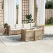 Ta vrtna sedežna garnitura je popoln dodatek za vaše dvorišče, teraso ali verando, saj zagotavlja udoben in vabljiv prostor za klepet z družino in prijatelji ali preprosto za sprostitev in uživanje na prostem. Vzdržljiv material: PE ratan, znan tudi kot poli ratan, je močan sintetični material, ki zahteva malo vzdrževanja in je videti kot naravni ratan. Je lahek, enostaven za čiščenje in se zaradi svoje vzdržljivosti in odpornosti na vremenske vplive pogosto uporablja za zunanje pohištvo.Udobno sedenje: To zunanje pohištvo z debelo oblazinjenimi blazinami zagotavlja udobno sedenje.Prevleko je mogoče odstraniti in oprati: Te sedežne blazine imajo odstranljive prevleke za lažje pranje in vzdrževanje.Modularna zasnova: Ta komplet zunanjega pohištva ima modularno zasnovo, zaradi česar je popolnoma prilagodljiv in enostaven za premikanje, tako da lahko zunanjo garnituro postavite kakor koli želite. Dobro je vedeti:Če želite, da vaše zunanje pohištvo ostane lepo, vam priporočamo, da ga zaščitite z vodoodporno prevleko.Maksimalna nosilnost (na sedež): 110 kgUV-odpornoLesene nogePotrebno sestavljanje: DaKotni sedež:Barva: BežMaterial: PE ratan, jeklo s prašnim premazom, trden akacijev les z naravnim oljnim premazomDimenzije: 63,5 x 63,5 x 62 cm (Š x G x V)Velikost sedeža: 56 x 56 cm (Š x G)Višina sedeža, merjena od tal (brez blazine): 32 cmSrednji sedež:Barva: BežMaterial: PE ratan, jeklo s prašnim premazom, trden akacijev les z naravnim oljnim premazomDimenzije: 63,5 x 63,5 x 62 cm (Š x G x V)Velikost sedišča: 63 x 56 cm (Š x G)Višina sedeža, merjena od tal (brez blazine): 32 cmBlazina:Barva: Kremno belaMaterial prevleke: Tkanina (100 % poliester)Polnilo sedežne blazine: PenaPolnilo hrbtne blazine: bombažna vlaknaDimenzije sedežne blazine (kotna): 56,5 x 56,5 x 3 cm (Š x G x D)Dimenzije sedežne blazine (sredinska): 63,5 x 56,5 x 3 cm (Š x G x D)Dimenzije hrbtne blazine (kotna): 52 x 35 x 10 cm (D × Š × D)Dimenzije hrbtne blazine (sredinska): 63 x 35 x 10 cm (D x Š x D)Paket vsebuje:5 x Kotni sedež2 x Sredinski sedež12 x Blazina za hrbet7 x Sedežna blazina s snemljivo in pralno prevleko 3261886