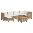 Ta vrtna sedežna garnitura je popoln dodatek za vaše dvorišče, teraso ali verando, saj zagotavlja udoben in vabljiv prostor za klepet z družino in prijatelji ali preprosto za sprostitev in uživanje na prostem. Vzdržljiv material: PE ratan, znan tudi kot poli ratan, je močan sintetični material, ki zahteva malo vzdrževanja in je videti kot naravni ratan. Je lahek, enostaven za čiščenje in se zaradi svoje vzdržljivosti in odpornosti na vremenske vplive pogosto uporablja za zunanje pohištvo.Udobno sedenje: To zunanje pohištvo z debelo oblazinjenimi blazinami zagotavlja udobno sedenje.Prevleko je mogoče odstraniti in oprati: Te sedežne blazine imajo odstranljive prevleke za lažje pranje in vzdrževanje.Stabilna mizna plošča, ki je enostavna za čiščenje: Ta vrtna miza ima ploščo iz akacijevega lesa, ki je čvrsta, vzdržljiva in jo je enostavno čistiti z vlažno krpo.Modularna zasnova: Ta komplet zunanjega pohištva ima modularno zasnovo, zaradi česar je popolnoma prilagodljiv in enostaven za premikanje, tako da lahko zunanjo garnituro postavite kakor koli želite. Dobro je vedeti:Če želite, da vaše zunanje pohištvo ostane lepo, vam priporočamo, da ga zaščitite z vodoodporno prevleko.Maksimalna nosilnost (na sedež): 110 kgUV-odpornoLesene nogePotrebno sestavljanje: DaKotni sedež:Barva: BežMaterial: PE ratan, jeklo s prašnim premazom, trden akacijev les z naravnim oljnim premazomDimenzije: 63,5 x 63,5 x 62 cm (Š x G x V)Velikost sedeža: 56 x 56 cm (Š x G)Višina sedeža, merjena od tal (brez blazine): 32 cmSrednji sedež:Barva: BežMaterial: PE ratan, jeklo s prašnim premazom, trden akacijev les z naravnim oljnim premazomDimenzije: 63,5 x 63,5 x 62 cm (Š x G x V)Velikost sedišča: 63 x 56 cm (Š x G)Višina sedeža, merjena od tal (brez blazine): 32 cmStolček za noge:Barva: BežMaterial: PE ratan, jeklo s prašnim premazom, trden akacijev les z naravnim oljnim premazomDimenzije: 63,5 x 56 x 32 cm (Š x G x V)Višina sedeža, merjena od tal (brez blazine): 32 cmMiza:Barva: BežMaterial: PE ratan, jeklo s prašnim premazom, trden akacijev les z naravnim oljnim premazomDimenzije: 55 x 55 x 36 cm (D x Š x V)Blazina:Barva: Kremno belaMaterial prevleke: Tkanina (100 % poliester)Polnilo sedežne blazine: PenaPolnilo hrbtne blazine: bombažna vlaknaDimenzije sedežne blazine (kotna): 56,5 x 56,5 x 3 cm (Š x G x D)Dimenzije sedežne blazine (srednja): 63,5 x 56,5 x 3 cm (Š x G x D)Dimenzije hrbtne blazine (kotna): 52 x 35 x 10 cm (D × Š × D)Dimenzije hrbtne blazine (sredinska): 63 x 35 x 10 cm (D x Š x D)Paket vsebuje:3 x Kotni kavč2 x Sredinski sedež1 x Stolček za noge1 x Vrtna miza8 x Blazina za hrbet6 x Sedežna blazina s snemljivo pralno prevleko 3261922