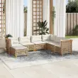 Ta vrtna sedežna garnitura je popoln dodatek za vaše dvorišče, teraso ali verando, saj zagotavlja udoben in vabljiv prostor za klepet z družino in prijatelji ali preprosto za sprostitev in uživanje na prostem. Vzdržljiv material: PE ratan, znan tudi kot poli ratan, je močan sintetični material, ki zahteva malo vzdrževanja in je videti kot naravni ratan. Je lahek, enostaven za čiščenje in se zaradi svoje vzdržljivosti in odpornosti na vremenske vplive pogosto uporablja za zunanje pohištvo.Udobno sedenje: To zunanje pohištvo z debelo oblazinjenimi blazinami zagotavlja udobno sedenje.Prevleko je mogoče odstraniti in oprati: Te sedežne blazine imajo odstranljive prevleke za lažje pranje in vzdrževanje.Modularna zasnova: Ta komplet zunanjega pohištva ima modularno zasnovo, zaradi česar je popolnoma prilagodljiv in enostaven za premikanje, tako da lahko zunanjo garnituro postavite kakor koli želite. Dobro je vedeti:Če želite, da vaše zunanje pohištvo ostane lepo, vam priporočamo, da ga zaščitite z vodoodporno prevleko.Maksimalna nosilnost (na sedež): 110 kgUV-odpornoLesene nogePotrebno sestavljanje: DaKotni sedež:Barva: BežMaterial: PE ratan, jeklo s prašnim premazom, trden akacijev les z naravnim oljnim premazomDimenzije: 63,5 x 63,5 x 62 cm (Š x G x V)Velikost sedeža: 56 x 56 cm (Š x G)Višina sedeža, merjena od tal (brez blazine): 32 cmSrednji sedež:Barva: BežMaterial: PE ratan, jeklo s prašnim premazom, trden akacijev les z naravnim oljnim premazomDimenzije: 63,5 x 63,5 x 62 cm (Š x G x V)Velikost sedišča: 63 x 56 cm (Š x G)Višina sedeža, merjena od tal (brez blazine): 32 cmStolček za noge:Barva: BežMaterial: PE ratan, jeklo s prašnim premazom, trden akacijev les z naravnim oljnim premazomDimenzije: 63,5 x 56 x 32 cm (Š x G x V)Višina sedeža, merjena od tal (brez blazine): 32 cmBlazina:Barva: Kremno belaMaterial prevleke: Tkanina (100 % poliester)Polnilo sedežne blazine: PenaPolnilo hrbtne blazine: bombažna vlaknaDimenzije sedežne blazine (kotna): 56,5 x 56,5 x 3 cm (Š x G x D)Dimenzije sedežne blazine (srednja): 63,5 x 56,5 x 3 cm (Š x G x D)Dimenzije hrbtne blazine (kotna): 52 x 35 x 10 cm (D × Š × D)Dimenzije hrbtne blazine (sredinska): 63 x 35 x 10 cm (D x Š x D)Paket vsebuje:3 x Kotni kavč3 x Srednji sedež1 x Stolček za noge9 x Blazina za hrbet7 x Sedežna blazina s snemljivo in pralno prevleko 3261940