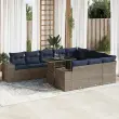 vidaXL Vrtna sedežna garnitura 11-delna z blazinami poli ratan akacija