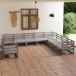 vidaXL Vrtna sedežna garnitura 10-delna siva trdna borovina