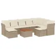 vidaXL Vrtna sedežna garnitura 10-delna z blazinami bež poli ratan