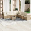 vidaXL Vrtna sedežna garnitura 10-delna z blazinami bež poli ratan