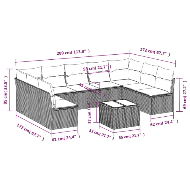 vidaXL Vrtna sedežna garnitura 10-delna z blazinami bež poli ratan