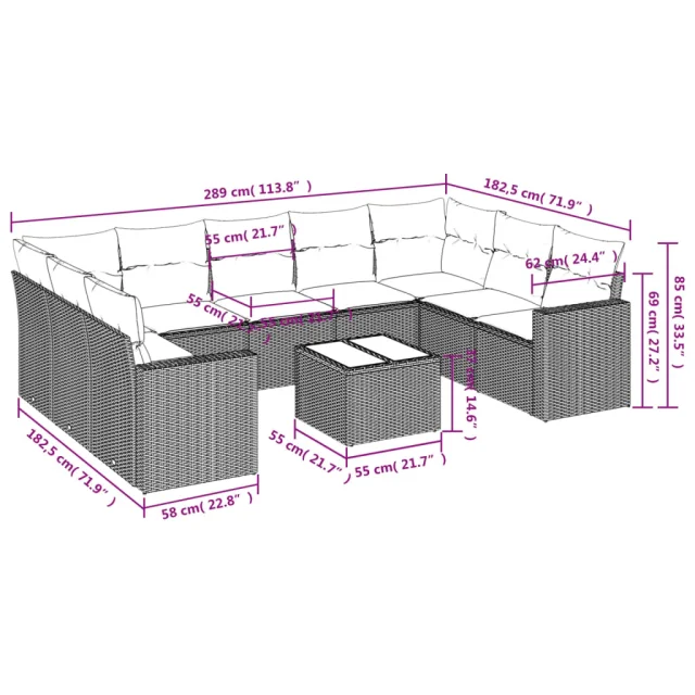 vidaXL Vrtna sedežna garnitura 10-delna z blazinami bež poli ratan