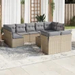 vidaXL Vrtna sedežna garnitura 10-delna z blazinami bež poli ratan