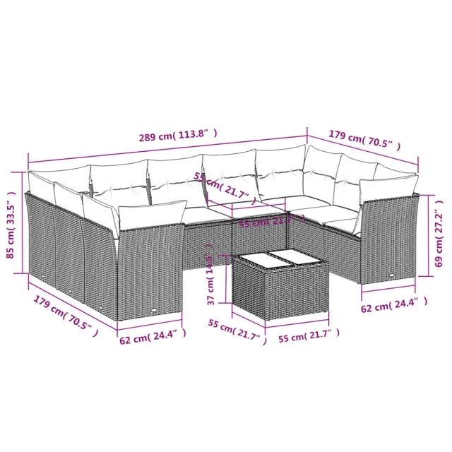 vidaXL Vrtna sedežna garnitura 10-delna z blazinami bež poli ratan