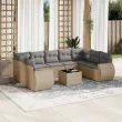 vidaXL Vrtna sedežna garnitura 10-delna z blazinami bež poli ratan