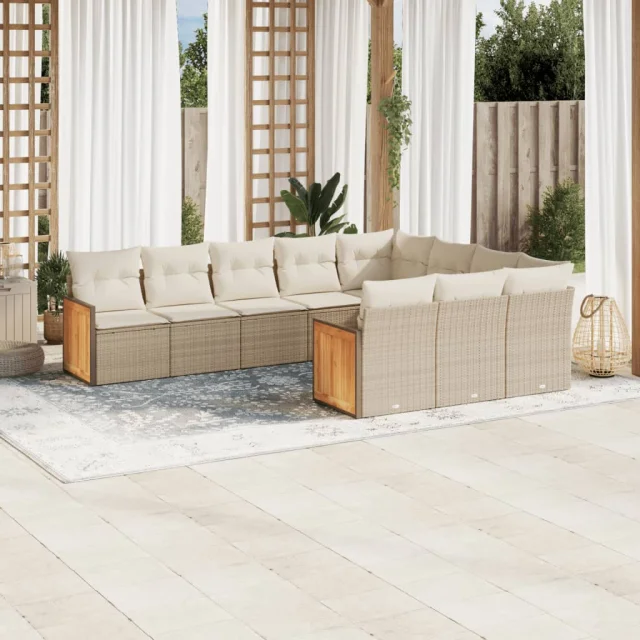 vidaXL Vrtna sedežna garnitura 10-delna z blazinami bež poli ratan