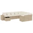 vidaXL Vrtna sedežna garnitura 10-delna z blazinami bež poli ratan