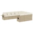 vidaXL Vrtna sedežna garnitura 10-delna z blazinami bež poli ratan