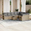 vidaXL Vrtna sedežna garnitura 10-delna z blazinami bež poli ratan