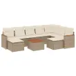 vidaXL Vrtna sedežna garnitura 10-delna z blazinami bež poli ratan