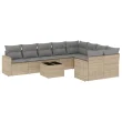 vidaXL Vrtna sedežna garnitura 10-delna z blazinami bež poli ratan