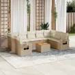 vidaXL Vrtna sedežna garnitura 10-delna z blazinami bež poli ratan