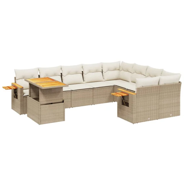 vidaXL Vrtna sedežna garnitura 10-delna z blazinami bež poli ratan