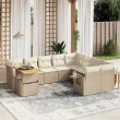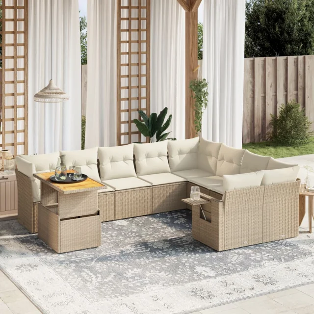 vidaXL Vrtna sedežna garnitura 10-delna z blazinami bež poli ratan
